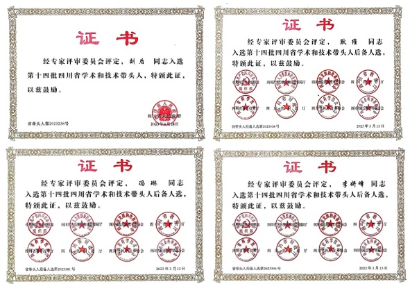 根据四川省人民政府《关于印发第十四批四川省学术和技术带头人名单的通知》(川府发〔2023〕13号),冰球官网刘盾教授入选“第十四批四川省学术和技术带头人”,李妍峰教授、耿维副教授、冯琳副教授入选“第十四批四川省学术与技术带头人后备人选”。