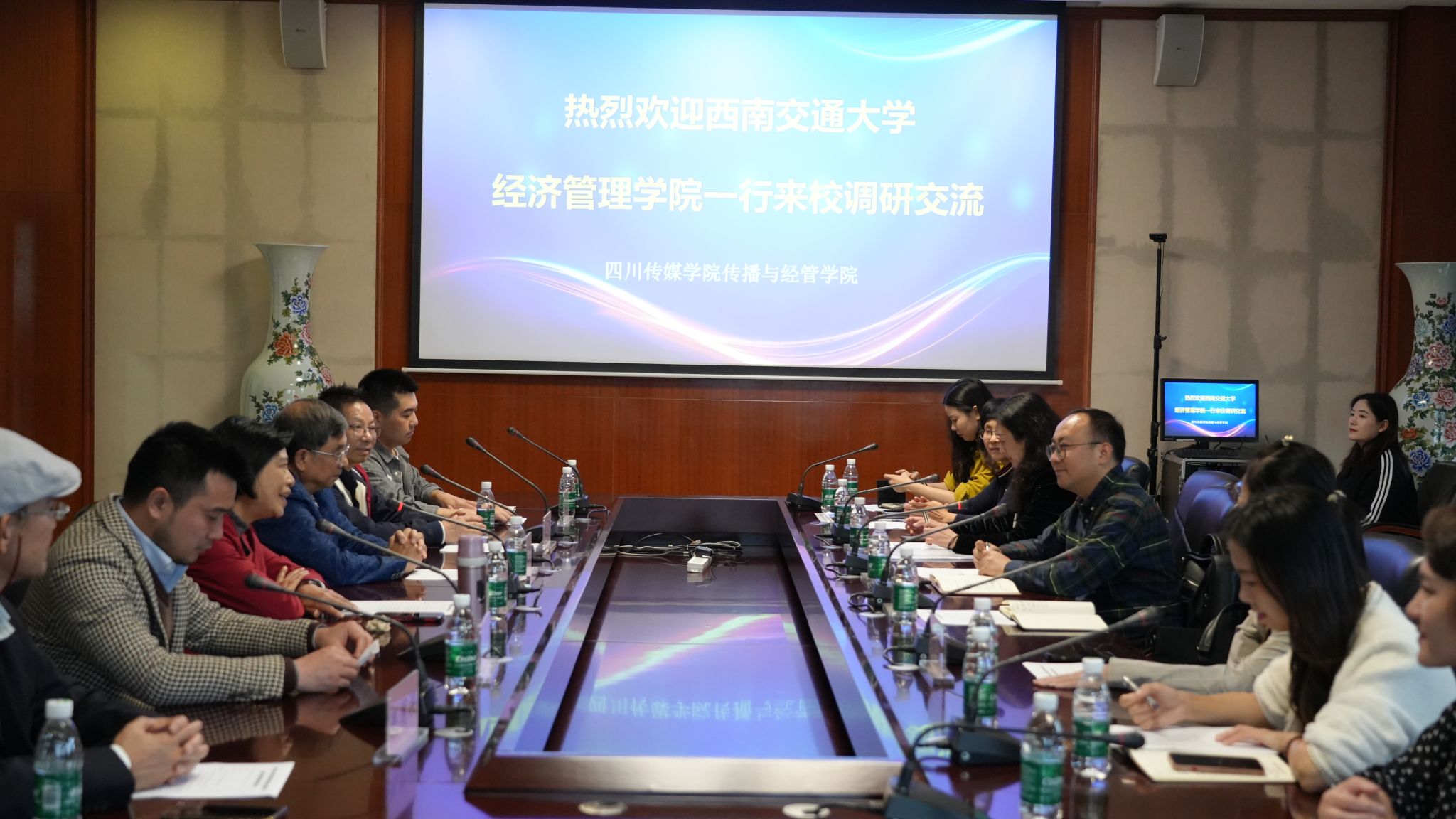 双方进行了深入的调研交流。学院党委副书记杨宏毅对冰球突破豪华版官方网站及冰球突破豪华版官方网站的基本情况、师资力量、人才培养、就业情况等进行了详细介绍,副院长李良对学院学科建设、师资团队等作出进一步的描述。四川传媒学院传播与经管学院院长肖建春介绍了该院师资队伍、学科发展、人才引育、考核激励等方面的情况。双方就学科建设、人才培养、校企合作、就业等事宜展开了深入交流。四川传媒学院传播与经管学院肖建春院长表示,该院在发展过程中,有大量的师资缺口,欢迎冰球突破豪华版官方网站的毕业生们加入到四川传媒学院,共同创造美好的未来。