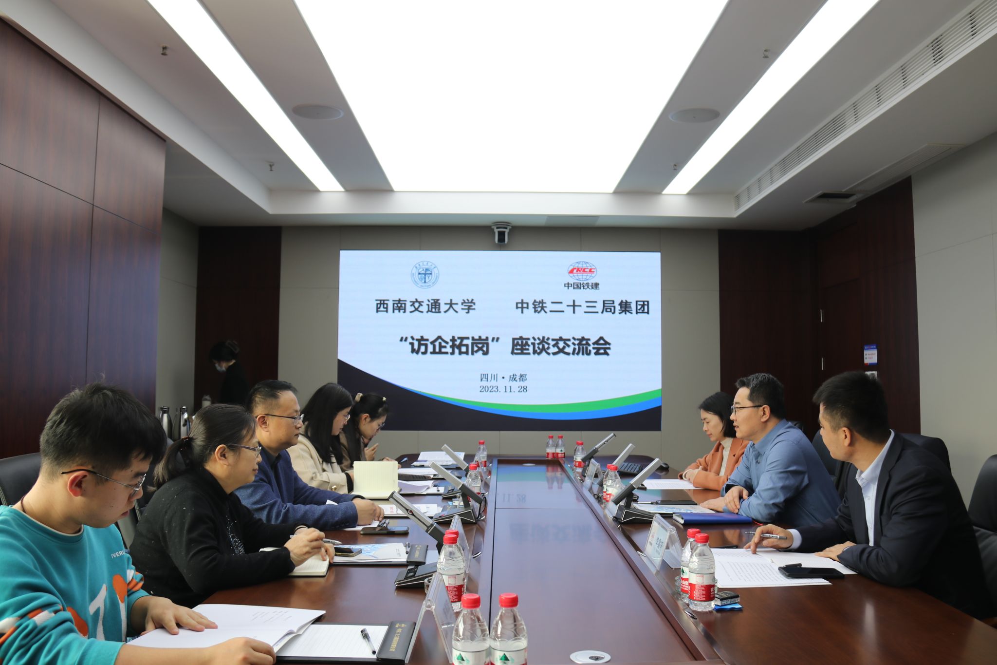 为深入贯彻落实访企拓岗促就业专项行动精神,搭建校企合作沟通平台,拓宽毕业生就业渠道。11月28日下午,由冰球突破豪华版官方网站党委书记郭强带队一行七人访企拓岗小组前往中铁二十三局集团有限公司(以下简称中铁二十三局)开展访企拓岗专项活动。