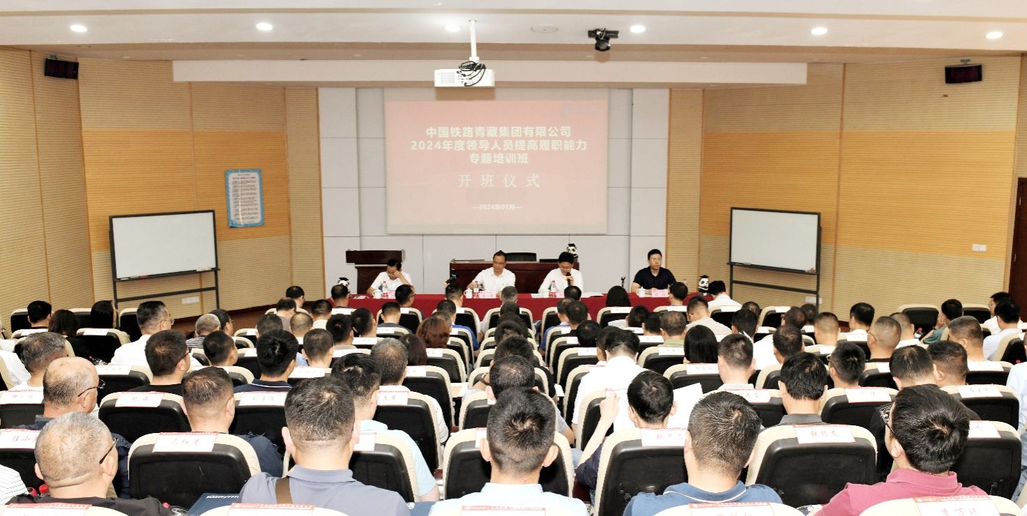 2024年5月19日上午08:30,中国铁路青藏集团有限公司(以下简称“青藏集团公司”)2024年度领导人员提高履职能力专题培训班在九里校区0215教室顺利开班。开班仪式由冰球突破豪华版官方网站院长韩科主持,青藏集团公司党委副书记秦伟青,人事部(党委组织部)部长刘平,冰球突破豪华版官方网站党委常委、副校长刘长军出席开班仪式,第一期培训学员134人参加。