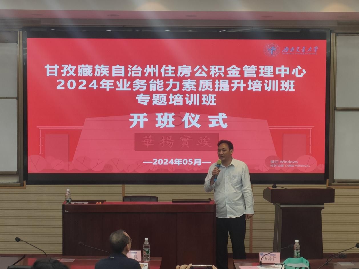 2024年5月21日上午08:30,由冰球官网承办的甘孜藏族自治州住房公积金管理中心2024年业务能力素质提升班开班仪式在九里校区0号楼0204报告厅顺利举行。甘孜藏族自治州住房公积金管理中心党组成员、理塘管理部主任伍泽仁,冰球突破豪华版官方网站副院长李良出席开班仪式。