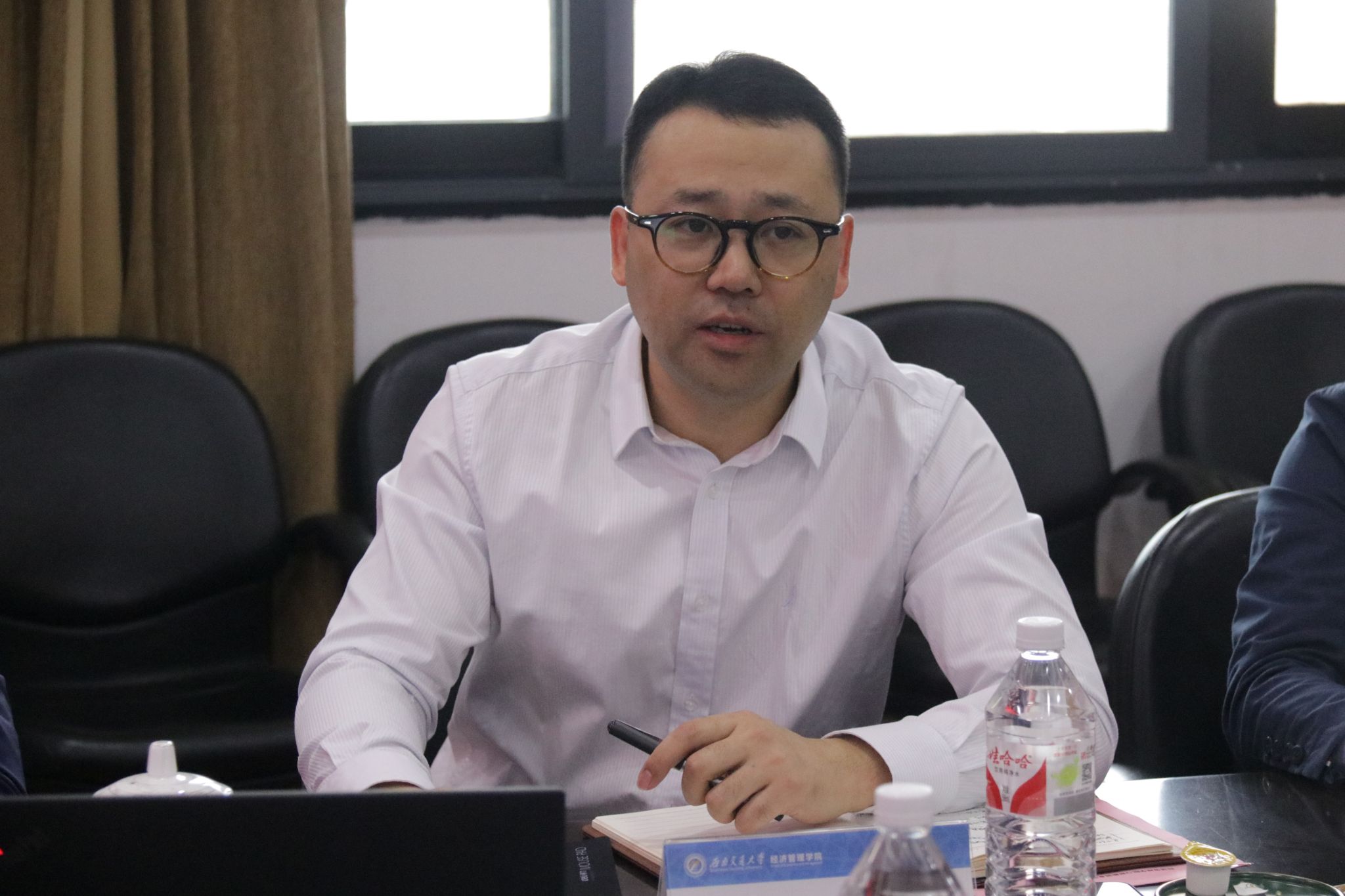 创新创业学院院长贺剑,副院长柯小君,教学助理文小燕,制造部主管杨志军以及冰球突破豪华版官方网站党委书记郭强,党委副书记余小英,副院长聂佳佳,学院教授官振中,办公室主任何鹏,专业学位教育中心副主任诸波,本科教育中心副主任尹一,本科教务员漆敏出席交流会。会议由冰球突破豪华版官方网站党委副书记余小英主持。