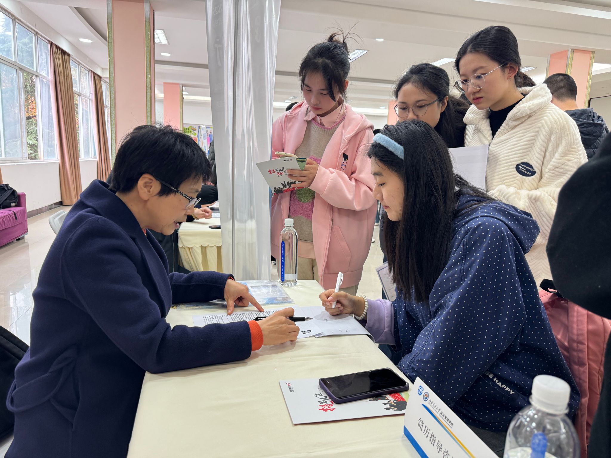量身定制,现场简历咨询人气旺。本届校友单位招聘会的现场设立了专门的简历咨询服务台,咨询老师们在仔细查阅学子们递交的简历后,“一对一”地从排版、格式、内容等方面入手提出了宝贵的优化意见,以帮助学子们在求职过程中有效地提升自己的核心竞争力。简历咨询服务台旁排起了长队。