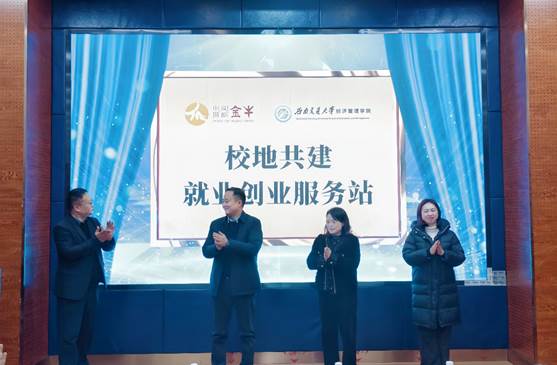 高平平、徐苒鑫、郭强、凌云共同为“校地共建就业创业服务站”揭牌。与会人员参观了服务站,并听取项目运营方国投人力资源服务有限公司成都分公司对项目的详细介绍。