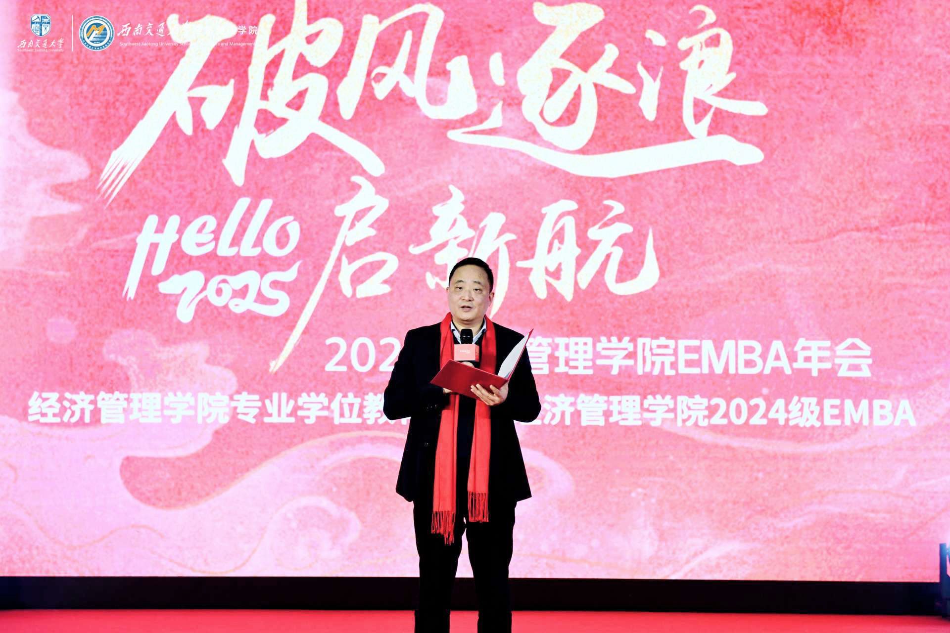 2025年1月4号,冰球突破豪华版官方网站冰球突破豪华版官方网站2025“破风·逐浪·启新航”EMBA年会在成都隆重举行,学校党委副书记高平平、学校职能部处相关领导以及学院党政领导班子、师生及校友代表齐聚一堂,共襄盛会。