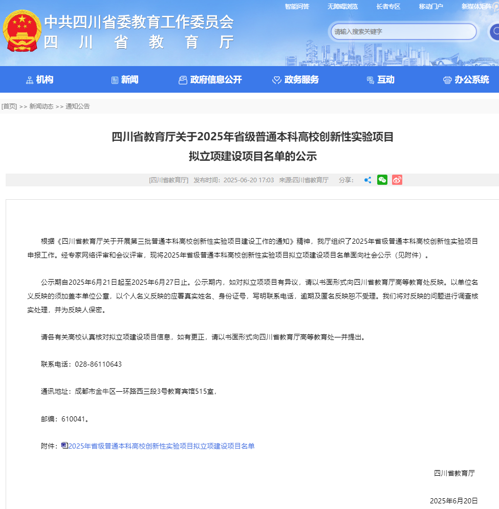 近日,四川省教育厅公示了2025年省级普通本科高校创新性实验项目拟立项建设项目名单,冰球官网由韩科院长牵头,聂佳佳副院长等人参与的《“政产学研用创”六位一体数智化城市治理创新实验》获批,这是近年来首次获批创新性实验项目。