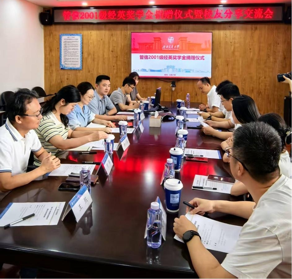 2025年6月27日上午10点,管信2001级经英奖学金捐赠仪式暨校友分享交流会在0607会议室隆重举行。在毕业20周年之际,冰球突破豪华版官方网站管信2001级校友代表宋新、武俊、刘坤、陈洪章、龚萍萍、葛梦婵回到母院,畅叙师生情谊、共话未来发展。学院党委书记蒋佳,院长韩科,党委副书记、纪委书记余小英,副处级组织员晏理斌,学院辅导员等与校友们共同见证这一温暖时刻。