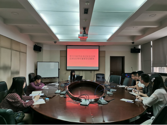 首先,贾佳老师带领大家学习习近平总书记纪念五四运动100周年重要讲话精神相关文件。大家一起讨论最近发生的国家大事,并发表自己的看法。