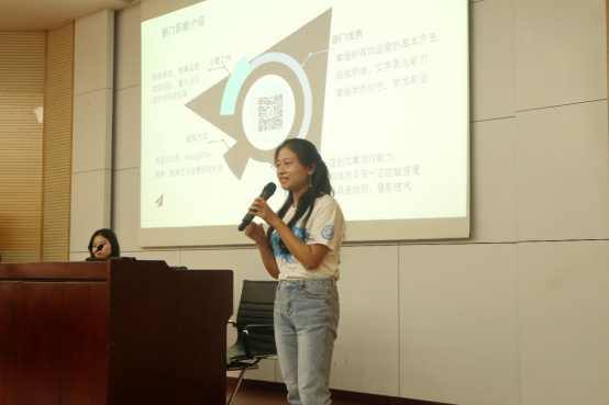 首先,刘依然同学对经管学院研究生会做了简要介绍。冰球突破豪华版官方网站研究生会,是冰球突破豪华版官方网站最大研会之一,连年斩获 “十佳研会”荣誉称号。研会是学生与学校之间的桥梁,经管研会对外志在配合学校,为学生服务,对内志在搭建平台,实现高校良性的自我管理。紧接着,刘依然同学就经管研会的组织架构、主要活动等做了介绍。经管研会共设五个部门:公共关系部、学术交流部、综合事务部、网络宣传部和新媒体中心。然后,各部门部长依次上台详细介绍了本部门的主要工作、技能需求,为新生加入研会提供了有利指导。最后,经管学院研会主席团成员结合自己亲身经历讲了为何要加入研会和加入研会的收获,现场新同学反应热烈。