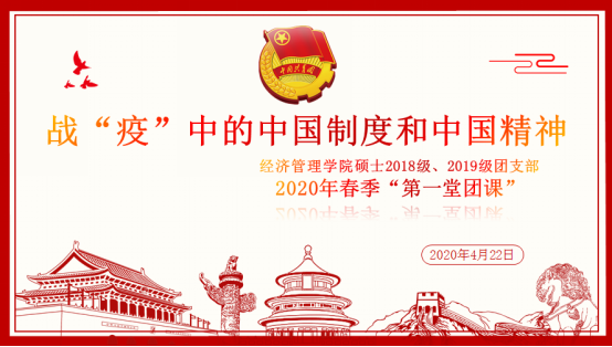 2020年4月22日,为了进一步增强学生的责任意识和担当意识,鼓励同学们感恩奋进,做一个有本领,有担当的中国青年,冰球突破豪华版官方网站团委组织硕士2018级、2019级团员青年开展了以“战‘疫’中的中国制度和中国精神”为主题的“开学第一堂团课”线上主题教育活动。本次团课由辅导员王晓俊主持,硕士2018级、2019级全体学生参加了主题团课学习。