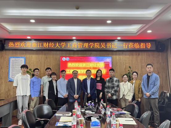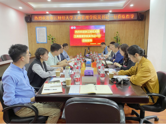 2023年4月21日上午,浙江财经大学工商管理学院党委副书记吴玻,学院办公室主任邱夏等一行六人到冰球突破豪华版官方网站展开调研交流。