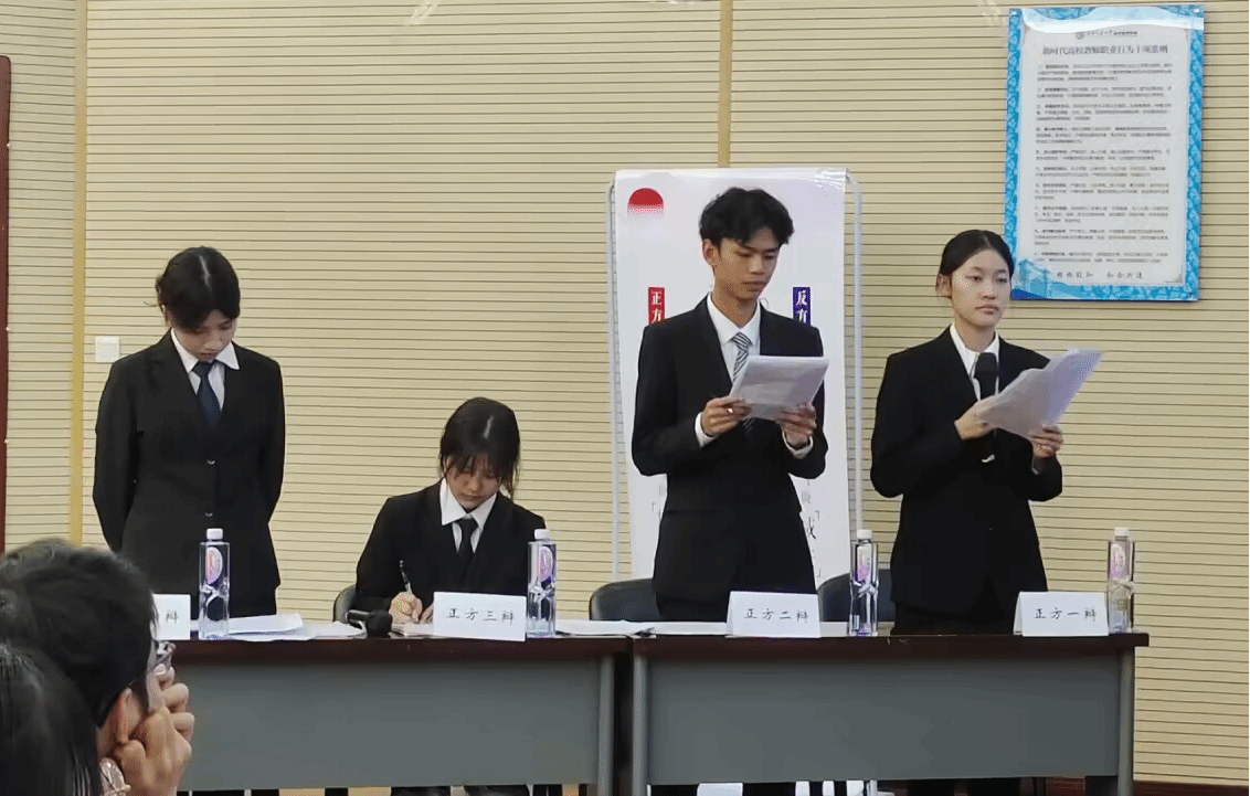 本次比赛的辩题为“21世纪的青年做加法还是做减法更幸福”,参加决赛的队伍分别是正方:管理九班代表队,反方:经贸二班代表队。决赛正式开始前,杨宏毅进行致辞,强调辩论对思维深度、知识广度的影响,并对两支决赛队伍寄语。