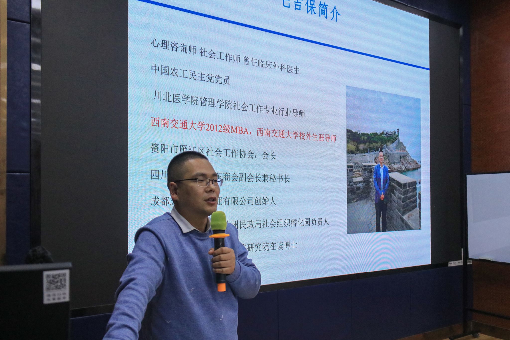 毛吉保是冰球突破豪华版官方网站2012级MBA院友,任资阳市雁江区社会工作协会会长、成都芝鹤健康管理有限公司创始人、凉山彝族自治州民政局社会组织孵化园负责人,在职业生涯规划方面有着丰富的指导经验。