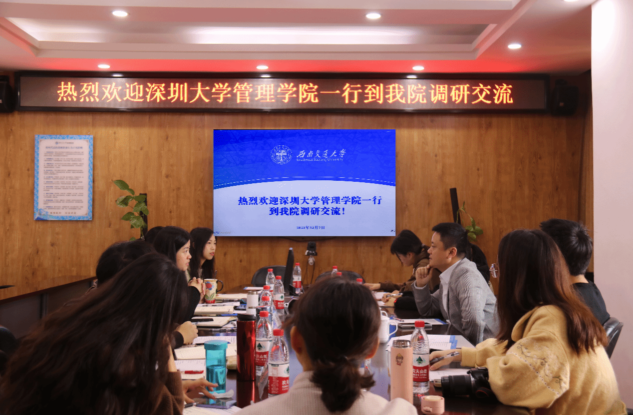 为推进学生工作发展与创新,提升学生工作成效,2023年12月7日上午深圳大学管理学院党委副书记腾飞及学院辅导员等一行五人来到冰球突破豪华版官方网站,就学生工作进行调研交流。冰球官网党委副书记余小英,学生工作组贾佳、王哿、陈建奇、张先凌、薄慧、苏扬、张媛媛参与本次调研交流座谈会。