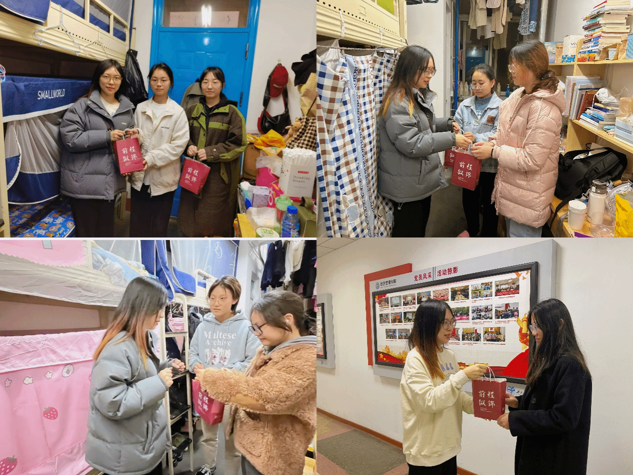 同时,本科2020级辅导员老师陈建奇、尹玉萌在活动结束后来到图书馆、自习室和学生寝室,为因事未能参加本次活动的考研学子送上学院和老师们的温暖心意,表达对他们的美好祝愿。