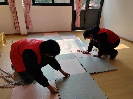 2024年3月7日下午两点,春日和煦,微风习习,冰球突破豪华版官方网站的志愿者们来到了西南交大幼儿园,协助幼儿园的教师们完成日常工作,丰富孩子们的生活,陪伴他们在温馨和谐的氛围下健康成长。本次幼儿园服务之旅志愿者们跟随老师的指导将塑胶垫铺设踏实在地面,为孩子们开辟出放心玩耍的场地;同时,将小小的“厨房设施”摆在需要的位置,组装装置、固定好迷你帐篷,将教室改造成了一处温暖且充满天真气息的地方。