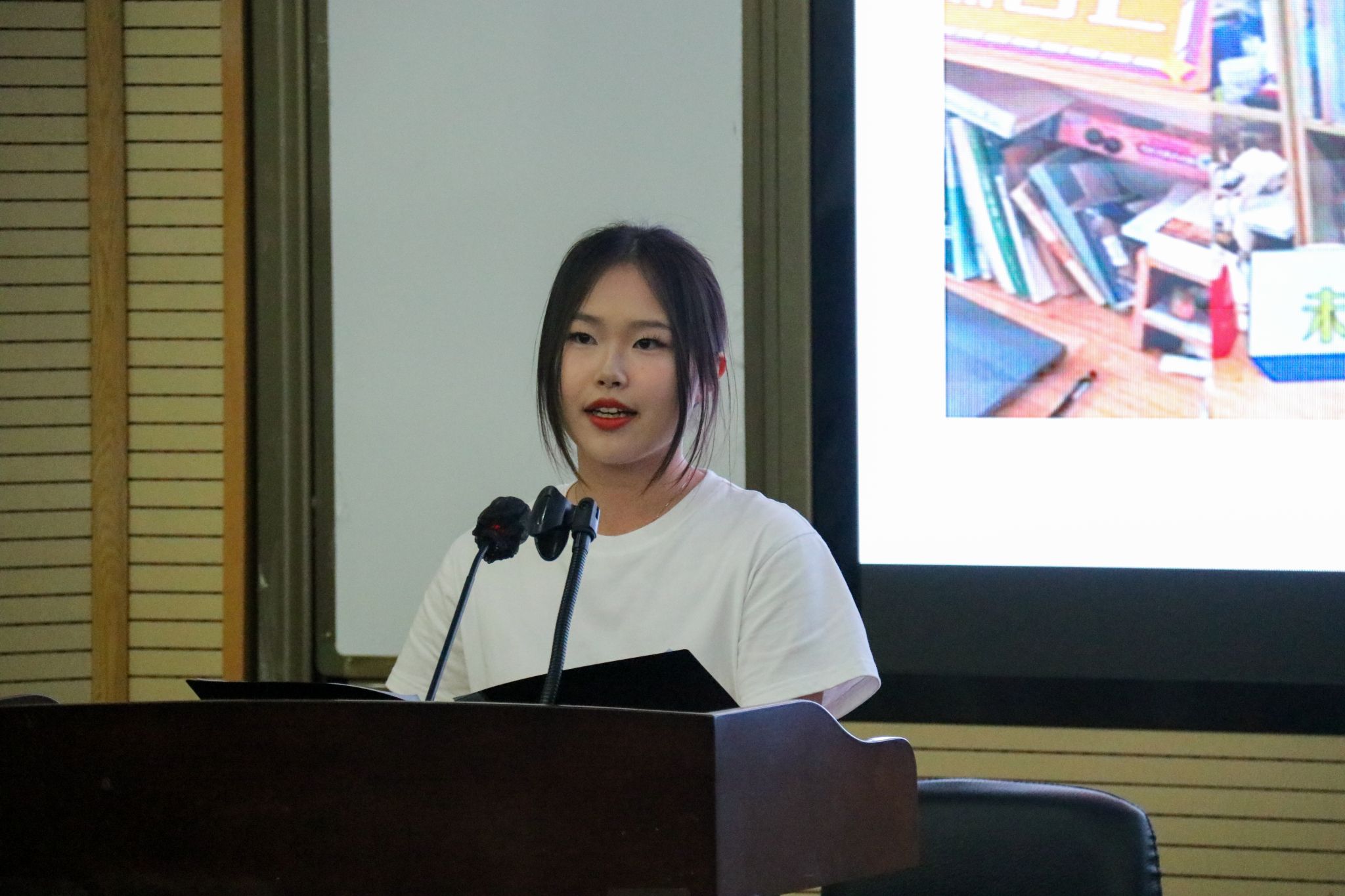 余小英老师为各团学组织主席团成员代表颁发了任职证书并为大会致辞。她对同学们的积极态度和工作表现给予了肯定,同时对新任团学组织干部提出了三点要求:扛起责任、勇于奉献和努力成长。