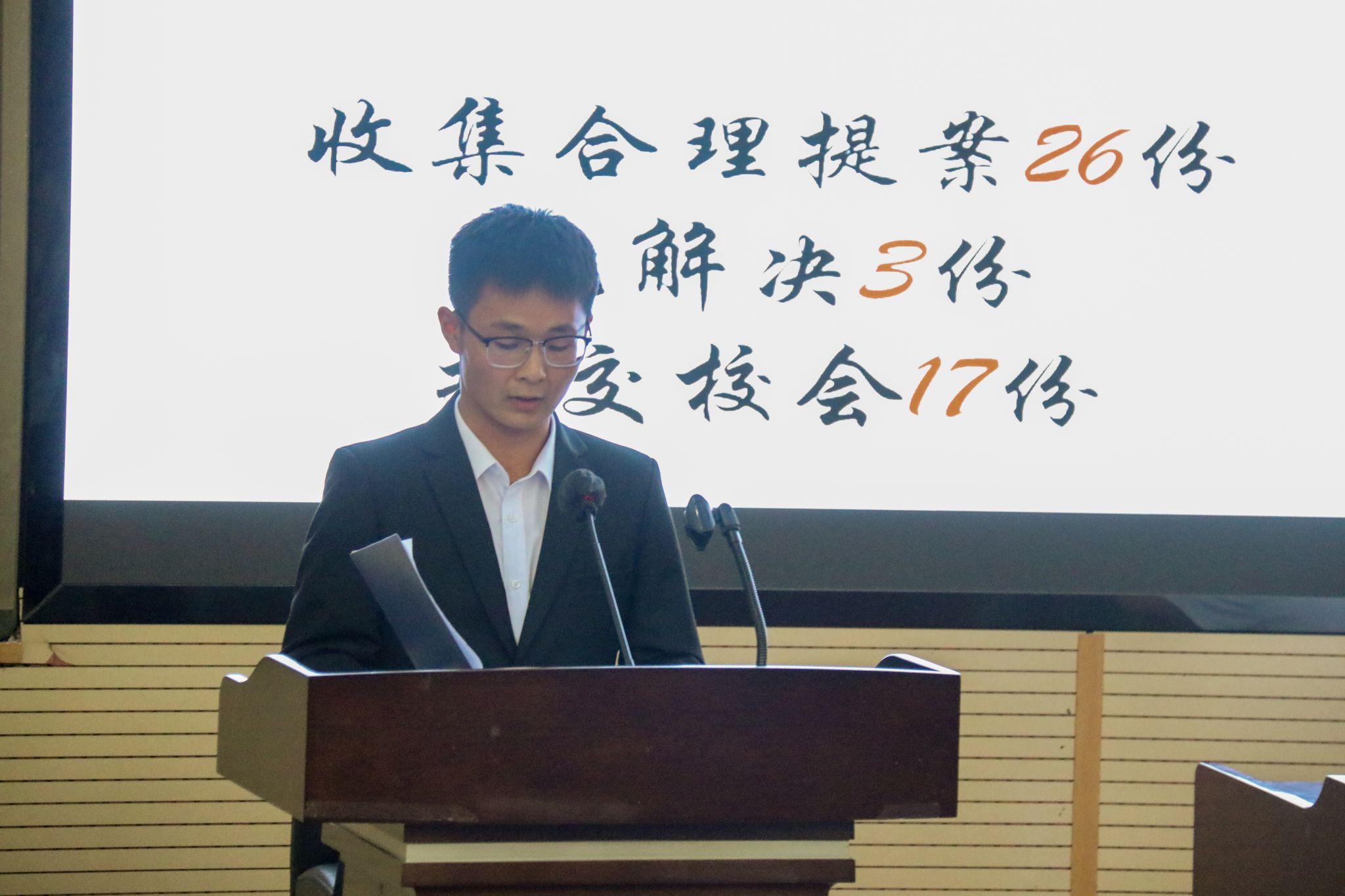 学院青年建设中心、学生会、青年志愿者协会、创新创业中心、经英传媒中心、班级联合会的负责人依次述职,对过去一学年的工作进行总结,同时对全体团学组织成员表示肯定与感谢。冰球突破豪华版官方网站各团学组织在过去一学年开展了“星火经英”团干部培训、我和院友“e”起跑、爱心雨伞、大学生生涯规划训练营、声音图书馆、优秀班团集体评选等各具特色的活动,助力冰球突破豪华版官方网站学生的全方位发展。