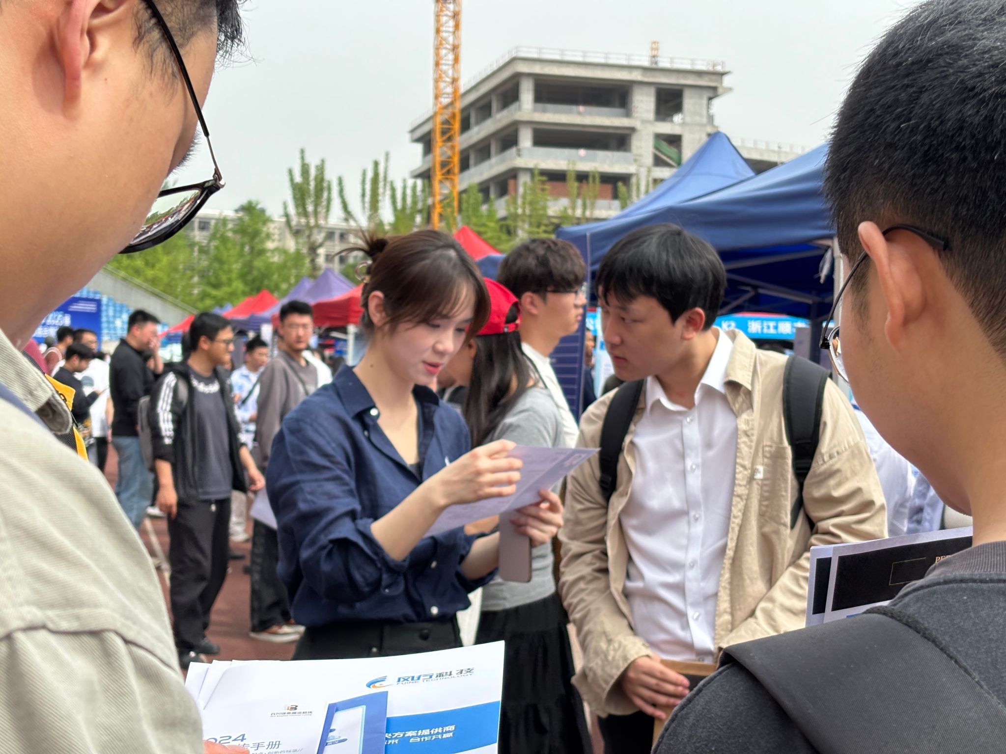 2025年4月14日,2025“百城千校万企”促就业行动——冰球突破豪华版官方网站春季大型双选会暨实习生双选会在犀浦校区北区篮球场举行,现场共700余家企业到场招聘我校2024届毕业生和2025届实习生。冰球突破豪华版官方网站院长韩科、党委副书记余小英,辅导员张先凌、钟文婷、高天、贺小轩赴双选会现场,与毕业生面对面交流,全力打通就业服务"最后一公里"。