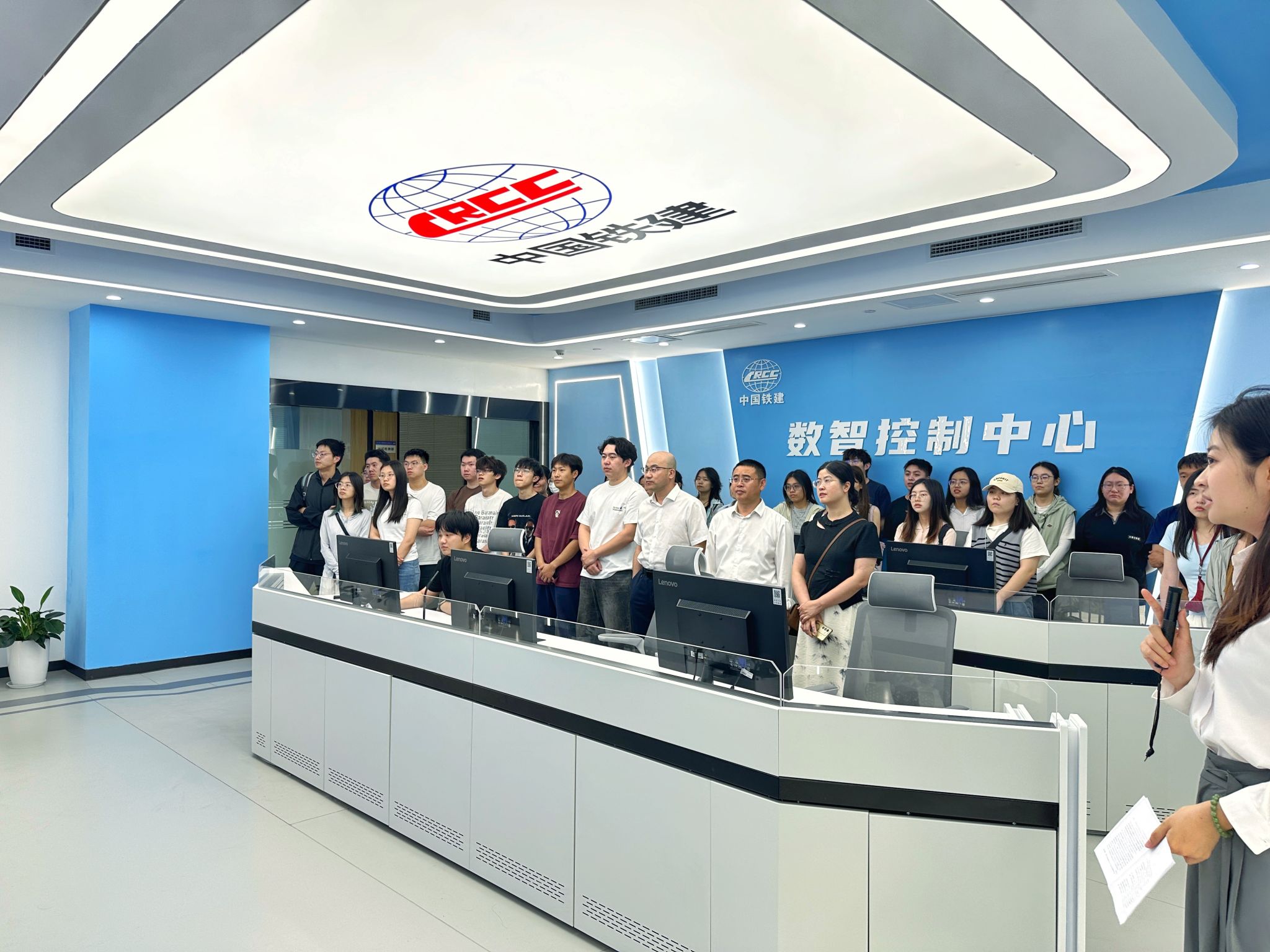 活动伊始,师生们首先参观了中铁十二局的数字化展厅。在展厅内,动态数据大屏以直观、立体的方式,全方位展示了企业在业务数字化转型与管理指标可视化领域的创新实践成果。参观过程中,同学们着重探究了铁路维管段全天候监控系统的运行机制,深入了解其背后的科技支撑与管理智慧。