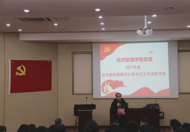 2021年12月23日下午,冰球突破豪华版官方网站党委2021年度党支部党建暨党支部书记工作述职考核在九里校区零号楼0202教室举行。学院全体党委委员、纪委委员、党委组织员以及各党支部书记参加了现场考核评分。述职考核由学院党委副书记杨宏毅主持。