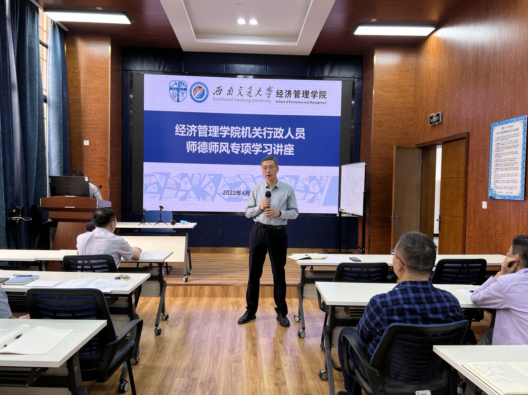 学院党委副书记杨宏毅带领大家逐条学习了《新时代高校教师职业行为十项准则》的内涵,并对应讲述了相关的警示案例。杨宏毅谈到,学院教职工要进一步加强学习党的方针政策,提高政治素养,遵守高校教师职业行为规范,言行得体,时刻以《新时代高校教师职业行为十项准则》严格要求自己。