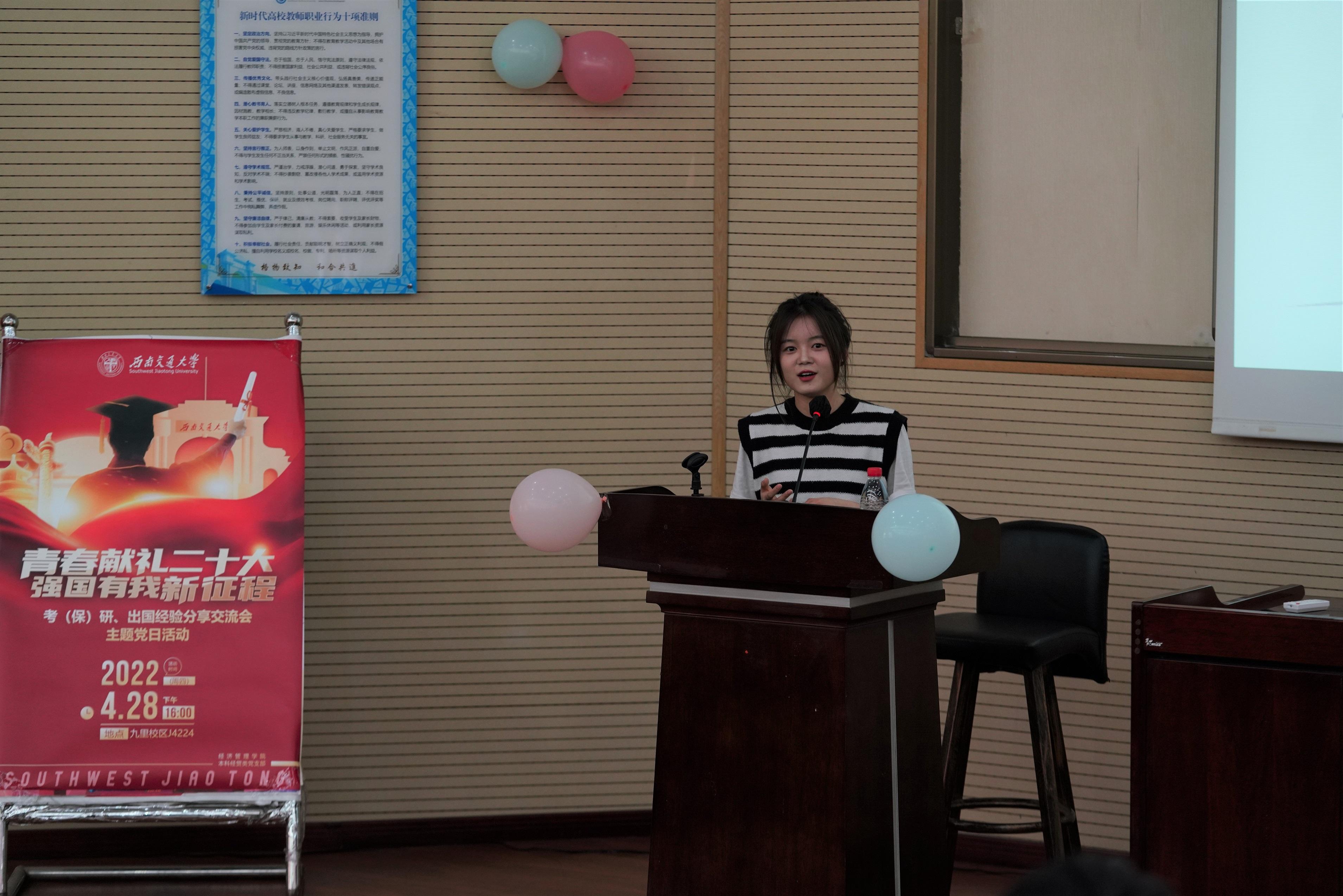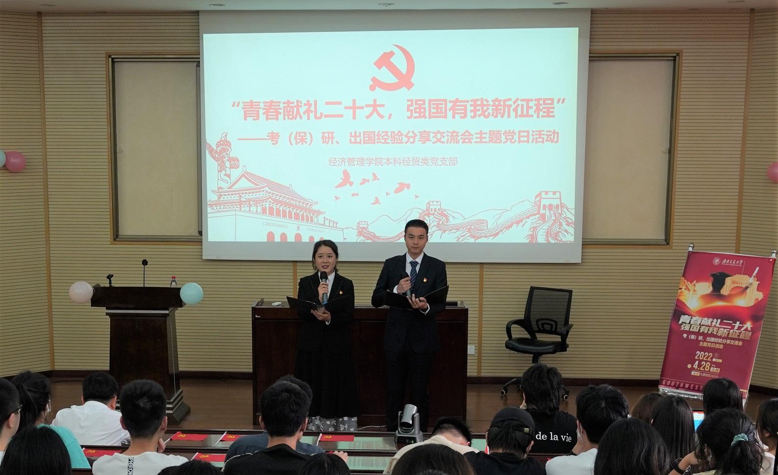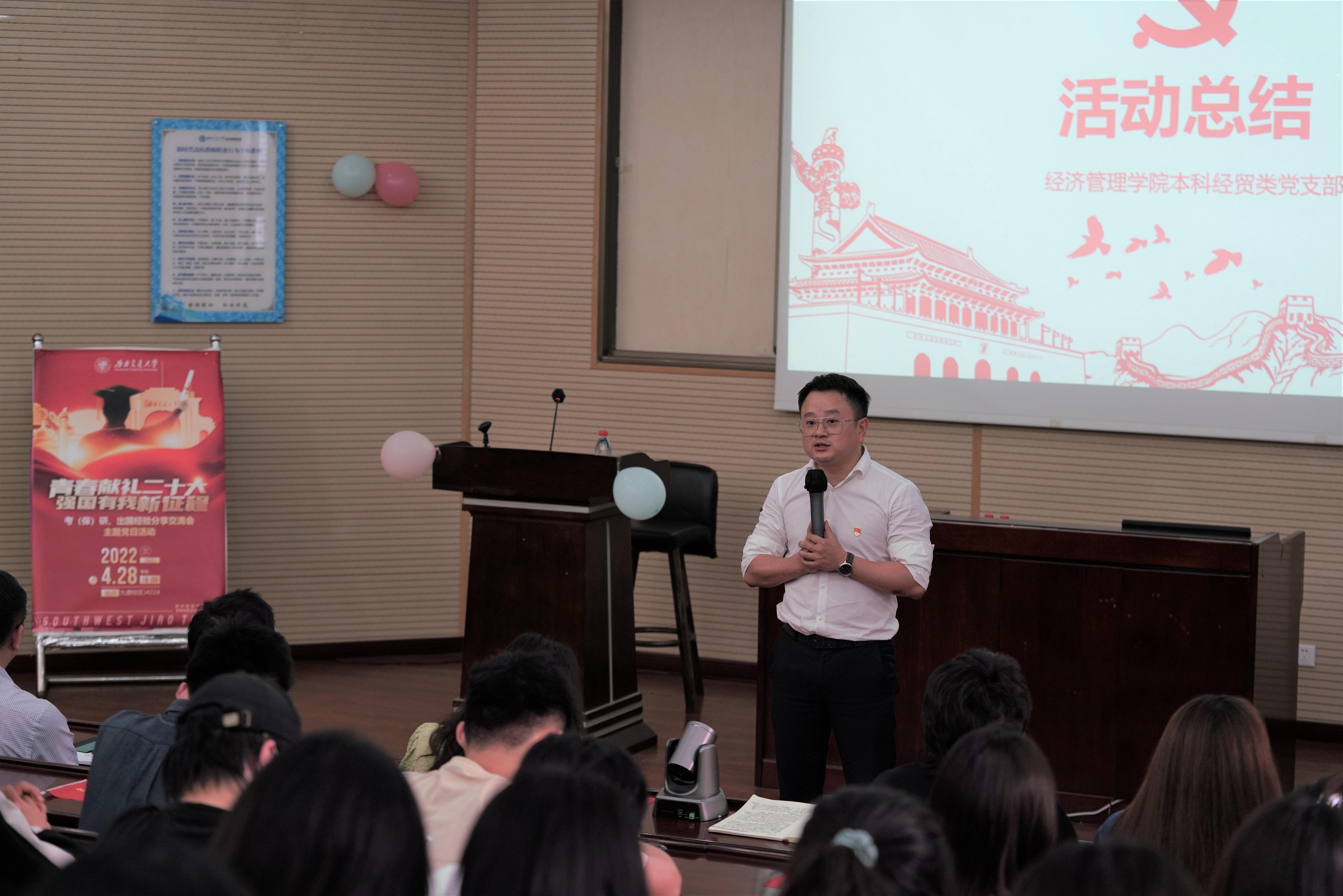 为深入学习贯彻习近平新时代中国特色社会主义思想,引领学生深刻领悟“两个确立”的决定性意义,增强“四个意识”,坚定“四个自信”,做到“两个维护”,弘扬伟大建党精神,以优异成绩迎接党的二十大胜利召开;同时深入贯彻实施学院党委就业指导工作“进支部”的要求,冰球突破豪华版官方网站本科经贸类党支部于2022年4月28日在J0202举办了“青春献礼二十大,强国有我新征程”主题党日活动,邀请本科2018级部分同学对考研、保研、出国等方面进行经验分享交流,党支部全体党员、积极分子参与此次活动。