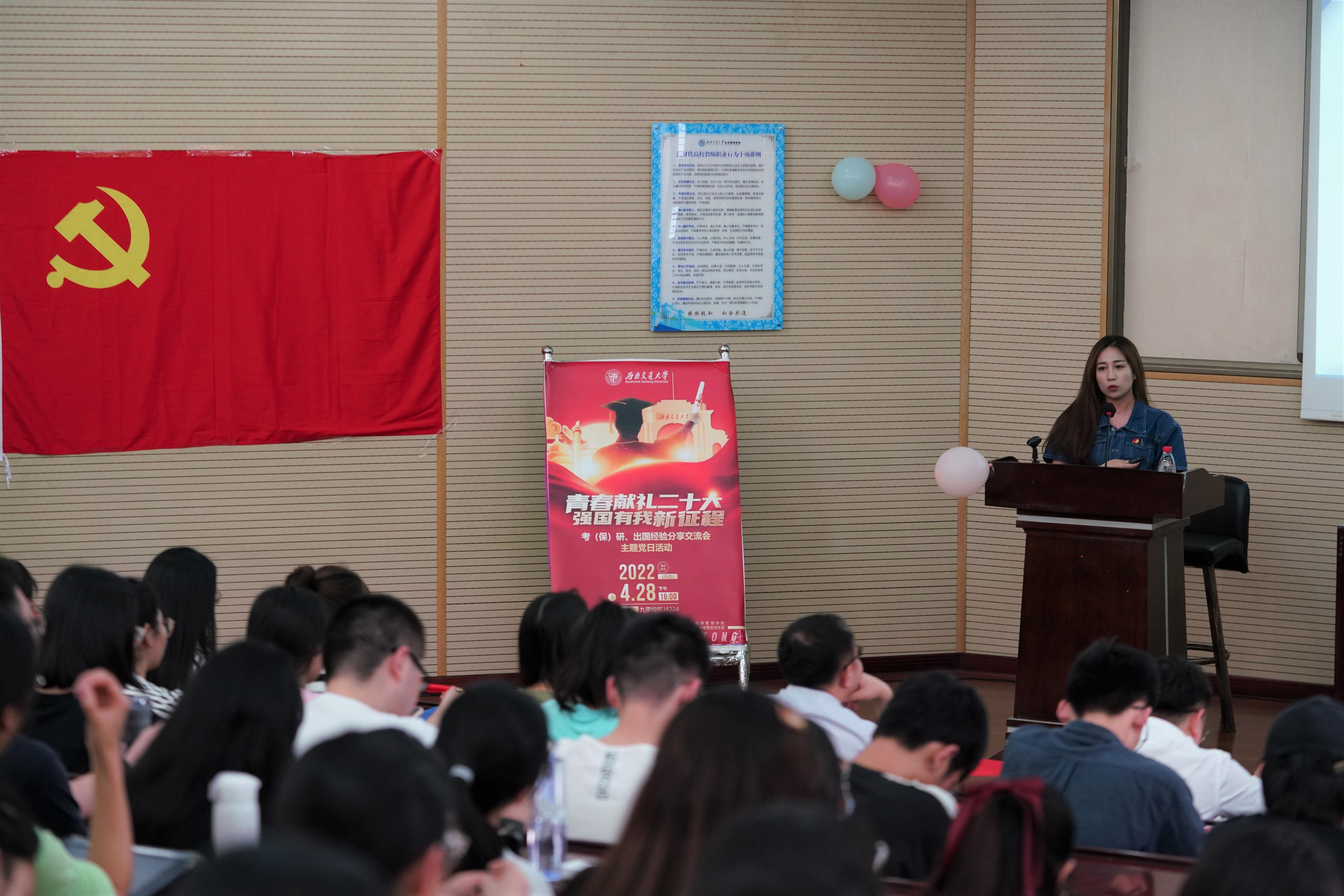 通过此次考(保)研、出国经验分享交流会主题党日活动,同学们对考研、保研以及出国留学都有了更加清晰的认识,同时也更加明确了自己未来的发展方向。习近平总书记曾在给新时代青年的回信中写道:“希望你们珍惜韶华、奋发有为。勇做走在时代前面的奋进者、开拓者、奉献者,努力使自己成为祖国建设的有用之才、栋梁之材,为实现中国梦奉献智慧和力量。”希望同学们都能够不断拼搏、奋勇前进,“相期同造最高峰”,相信成功将会属于每一位同学。