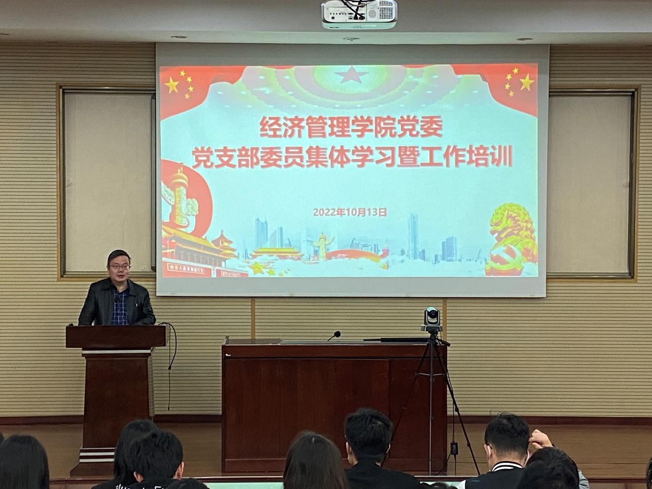 2022年10月13日下午4:00,学院党委党支部委员集体学习暨工作培训在九里校区零号楼0202举行。会议由党委副书记杨宏毅主持,学院党委领导、全体党支部委员及辅导员参加。