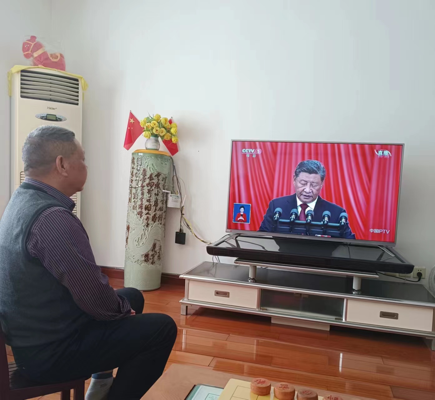 退休教职工在家观看大会