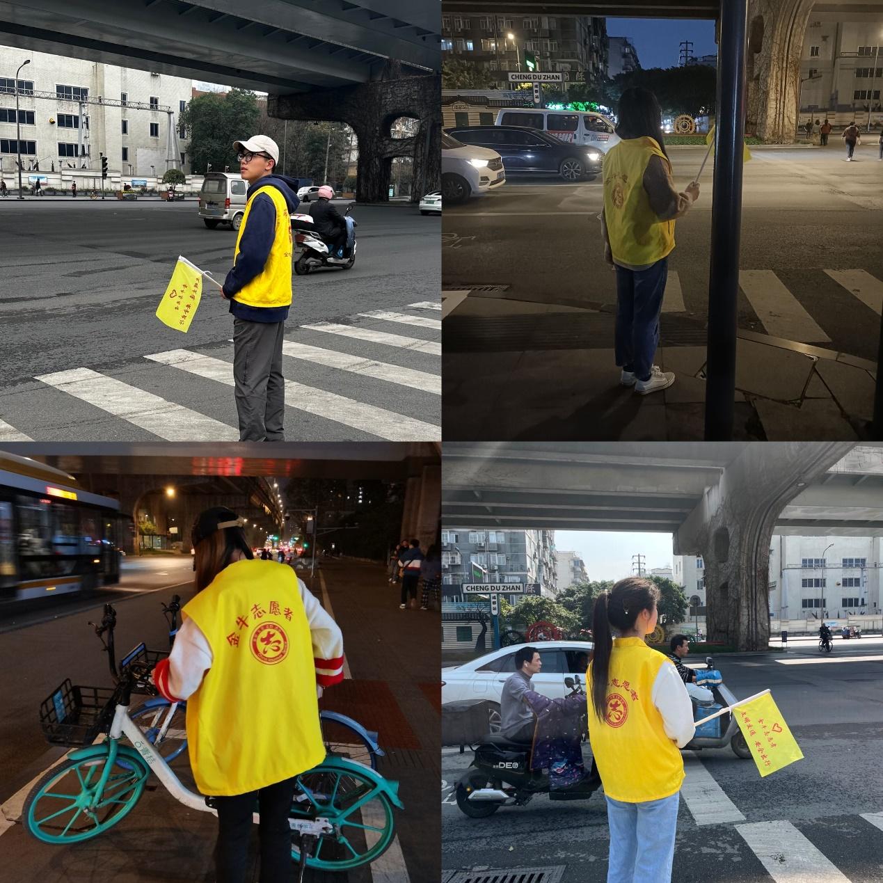 党支部成员积极投身于文明交通执勤的行动中,在学校附近的红绿灯路口,在车水马龙的上下班高峰,志愿者按时到点站岗执勤,劝导闯红灯、逆行等危险行为,用力所能及的志愿服务,增强市民文明出行的交通意识,为创造良好的道路交通环境贡献着自己的绵薄之力。