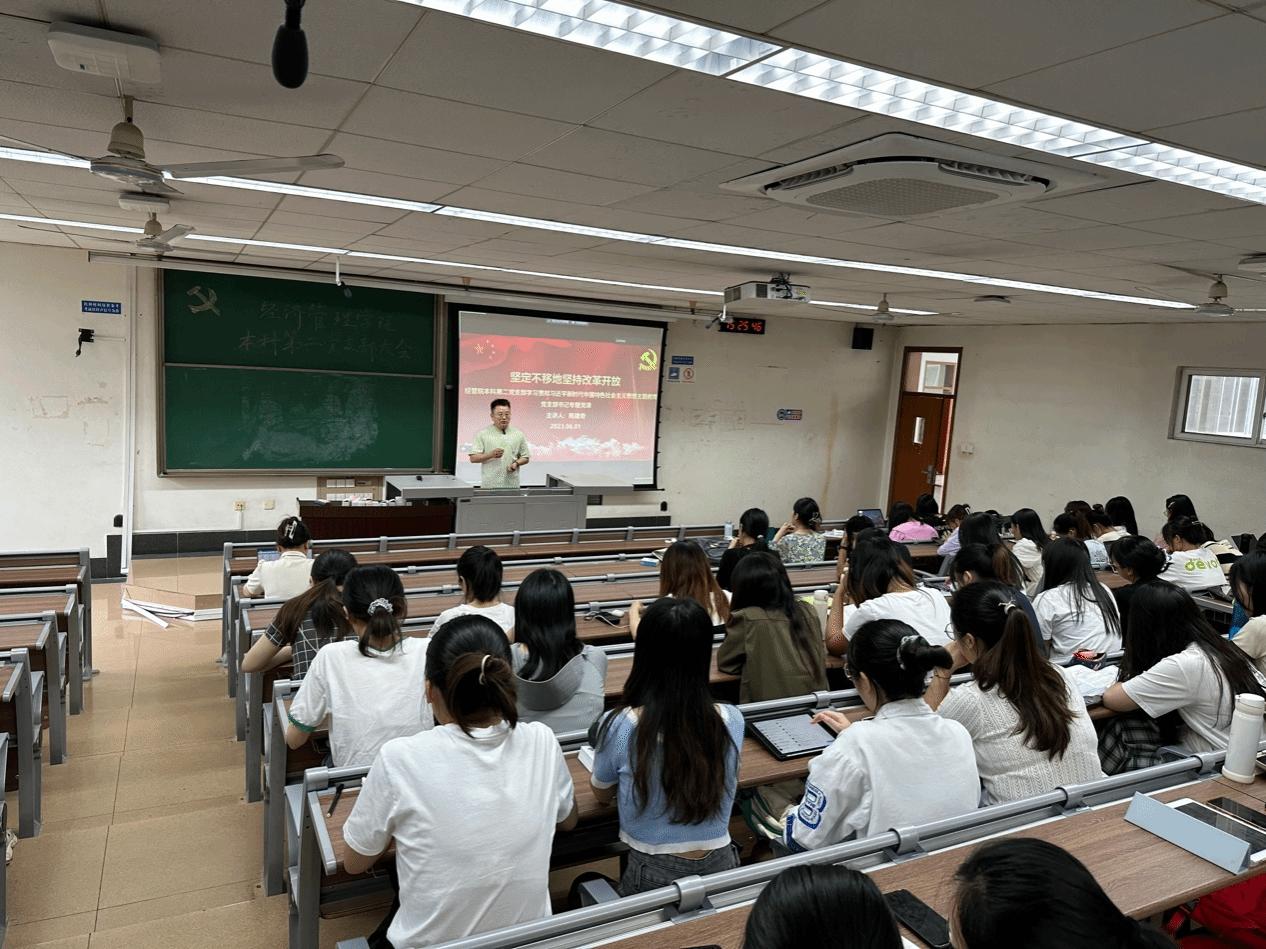 6月8日,冰球突破豪华版官方网站本科第二党支部邀请党支部联系党委委员、副书记杨宏毅为党支部成员讲授专题党课,加强理论学习,接受思想洗礼。杨宏毅以《深入学习贯彻党的二十大精神》为题,围绕党的二十大报告,从八个方面出发,带领党支部全体成员深学细悟,全面系统深入学习领会党的二十大精神,引导广大党员树立远大理想,担当时代责任。