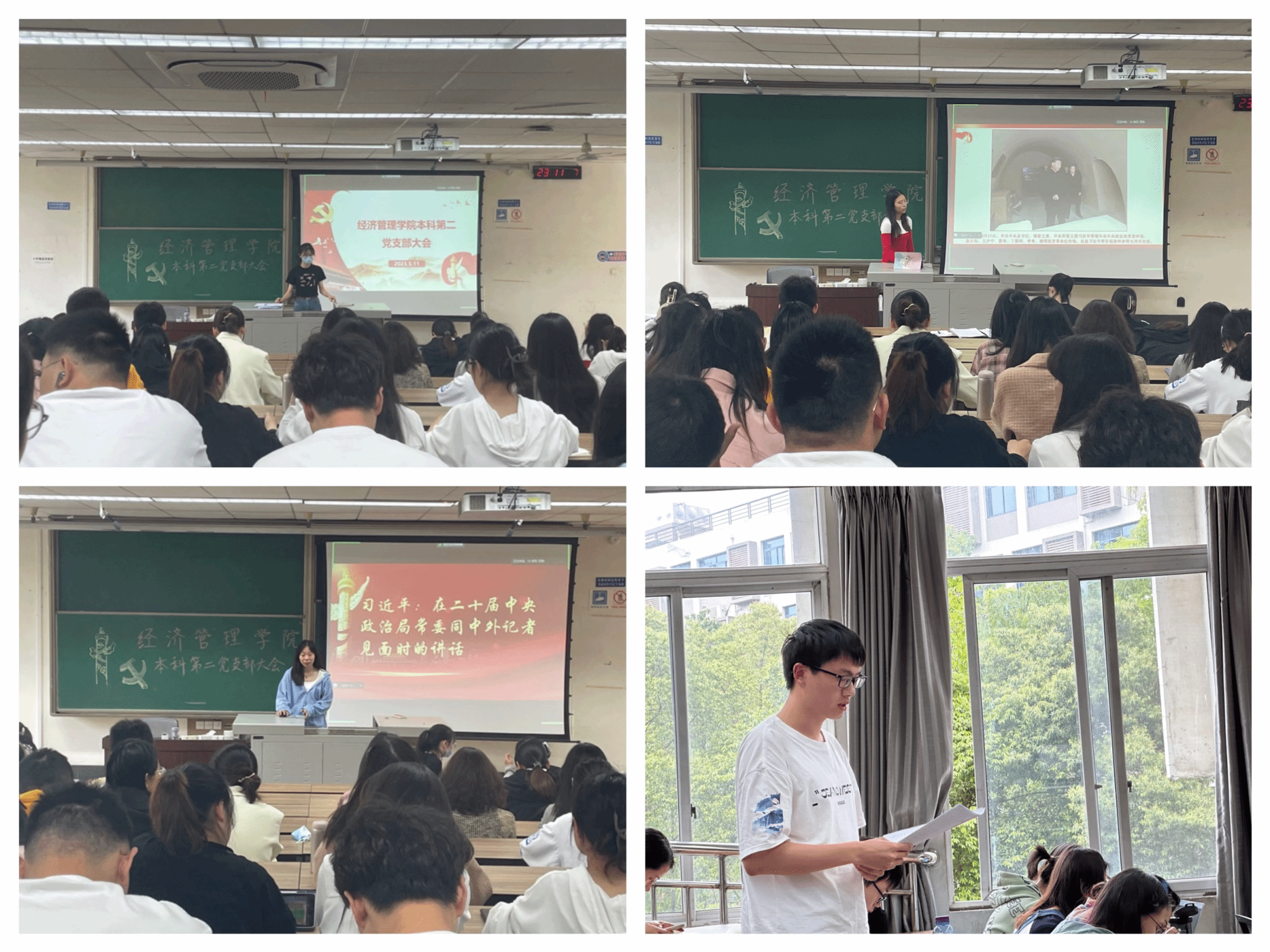 为深入学习领会党的二十大精神,学习贯彻习近平新时代中国特色社会主义思想,5月11日,本科第二党支部党员蔡秋萍、崔天荣等人对习近平新时代中国特色社会主义思想开展进一步的理论学习,在支部大会上作学习分享,带领支部各位同志共同学习、深入交流、提高思想认识。支部成员纷纷表示在优秀党员同志的带领学习下,受益匪浅。