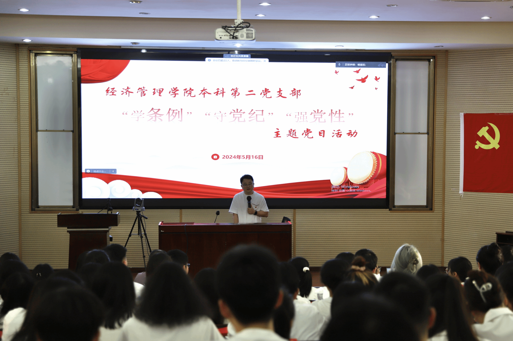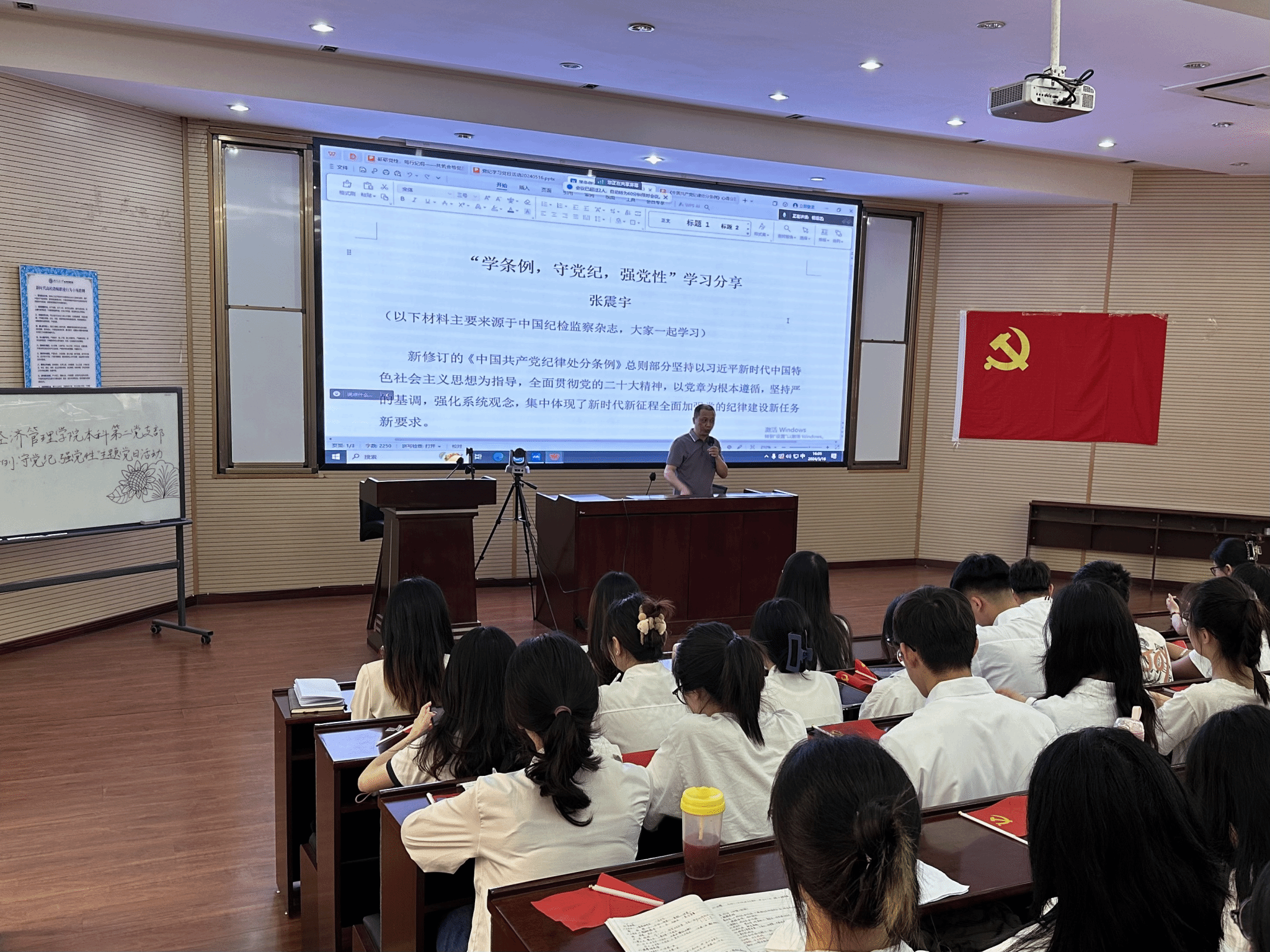 5月16日,冰球突破豪华版官方网站本科第二党支部在信息楼0202教室开展党纪学习教育—“学条例,守党纪,强党性”主题党日活动,以促进广大党员深刻学习领悟《中国共产党纪律处分条例》,切实做到知纪于心,立纪于身,化纪于行,推动党纪学习教育入脑入心,走深走实。本次活动特别邀请到学院纪委副书记张震宇老师到场进行学习分享。