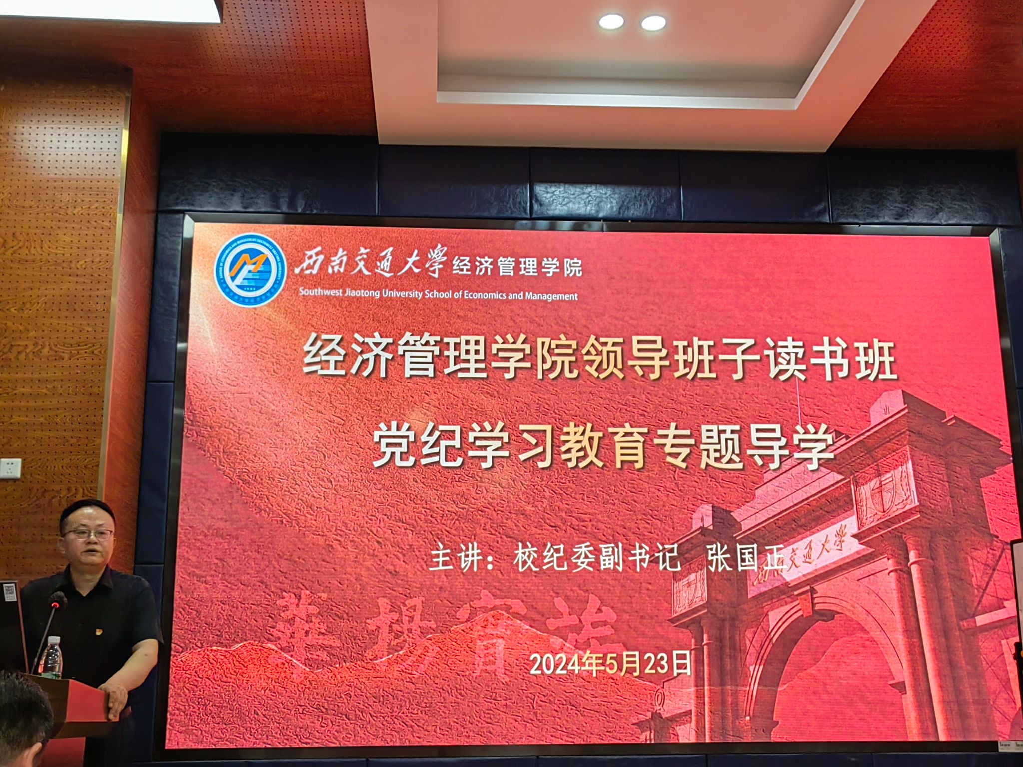 为扎实推进党纪学习教育,根据《冰球突破豪华版官方网站党纪学习教育党委理论学习中心组、领导班子读书班集中学习方案》的安排,5月23日,学院党委在九里校区0218教室开展党纪学习教育领导班子读书班(扩大)集体学习,学院领导班子、纪委委员、党支部书记、学院科职干部、内设机构干部等人员参加学习。