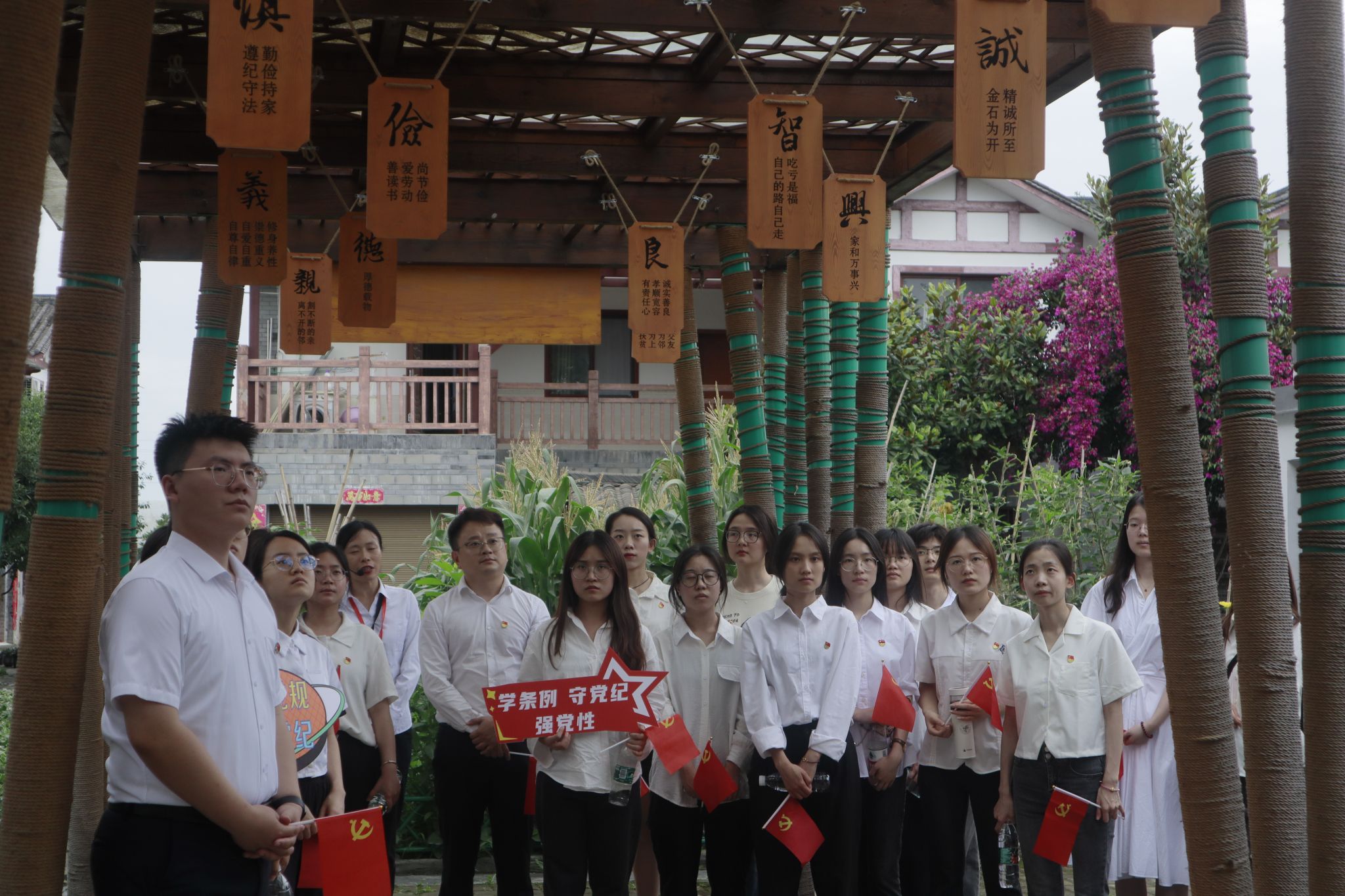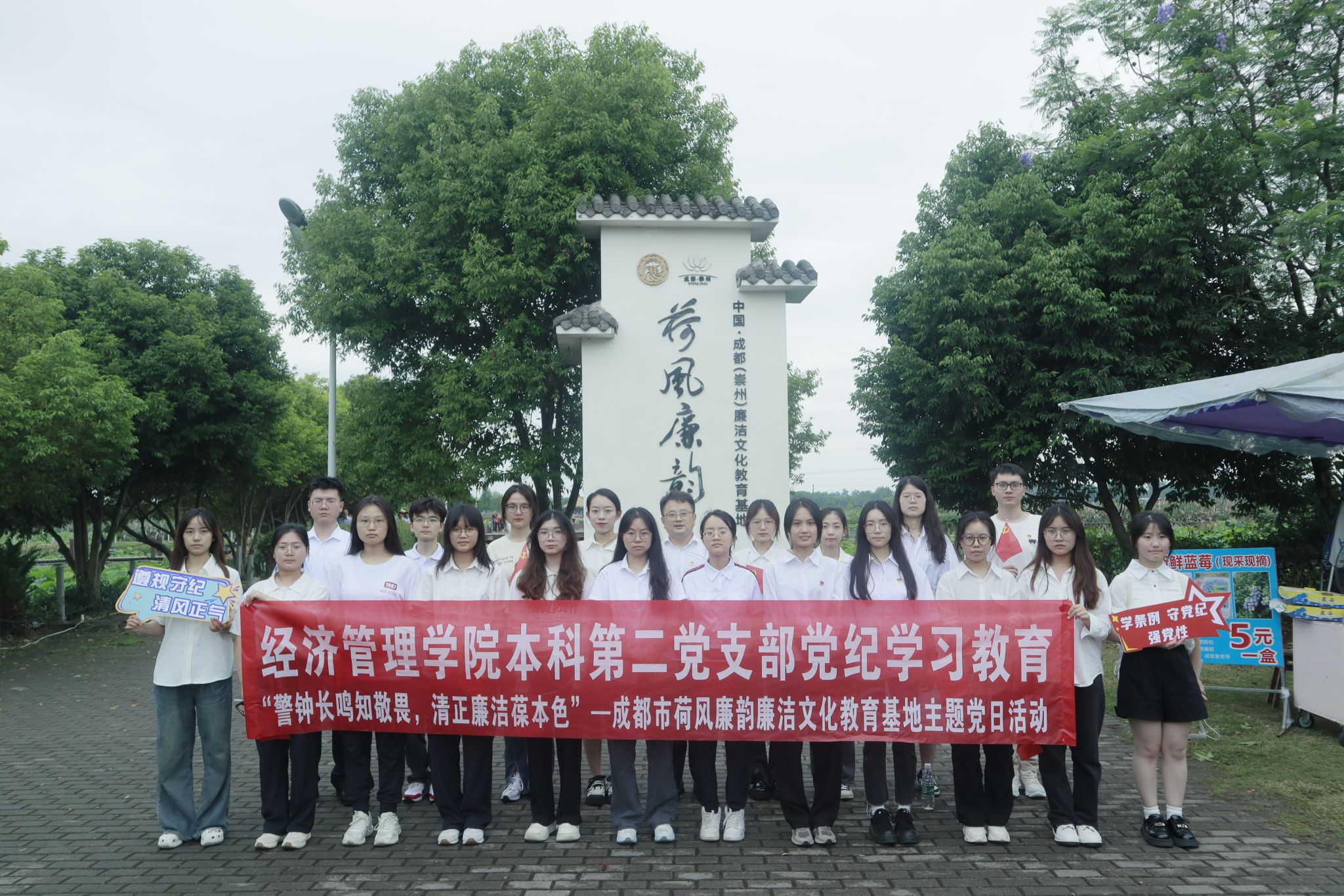 为扎实推进党纪学习教育,切实做到知纪于心,立纪于身,化纪于行,推动党纪学习教育入脑入心,走深走实,进一步抓好廉洁文化建设,筑牢拒腐防变的思想道德防线。2024年6月7日,冰球突破豪华版官方网站本科第二党支部22名党员、积极分子在党支部书记陈建奇带领下,前往位于四川省崇州市隆兴镇的“荷风廉韵”廉洁文化教育基地,实地开展党纪学习教育——“警钟长鸣知敬畏,清正廉洁葆本色”主题党日活动。