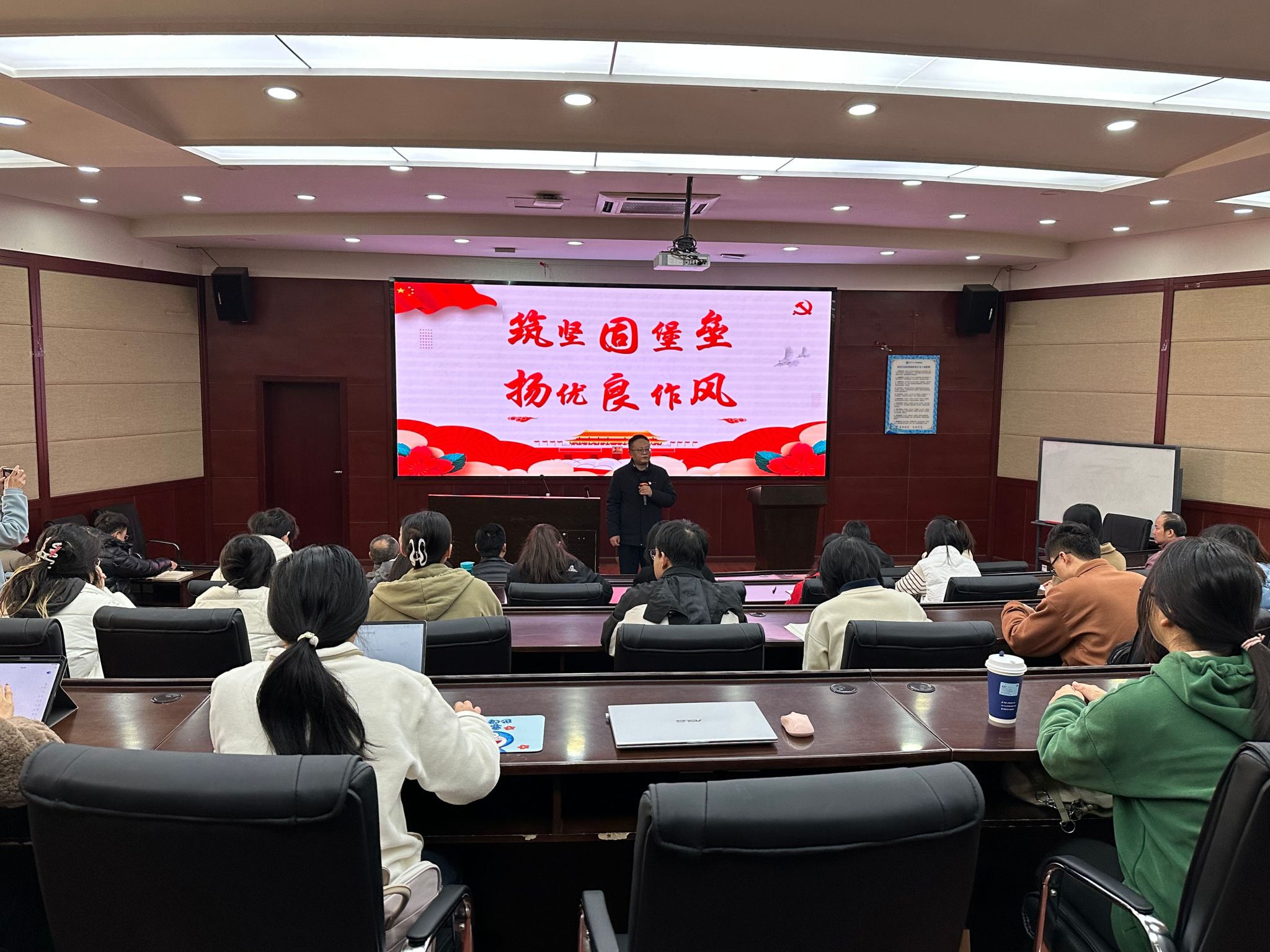 2024年11月28日上午10点半,冰球突破豪华版官方网站党委在零号楼J0228教室开展党委书记讲党课活动,本次专题党课由学院党委书记郭强主讲,学院党委副书记晏理斌、师生党支部委员和党员代表近40人参加了本次党课。