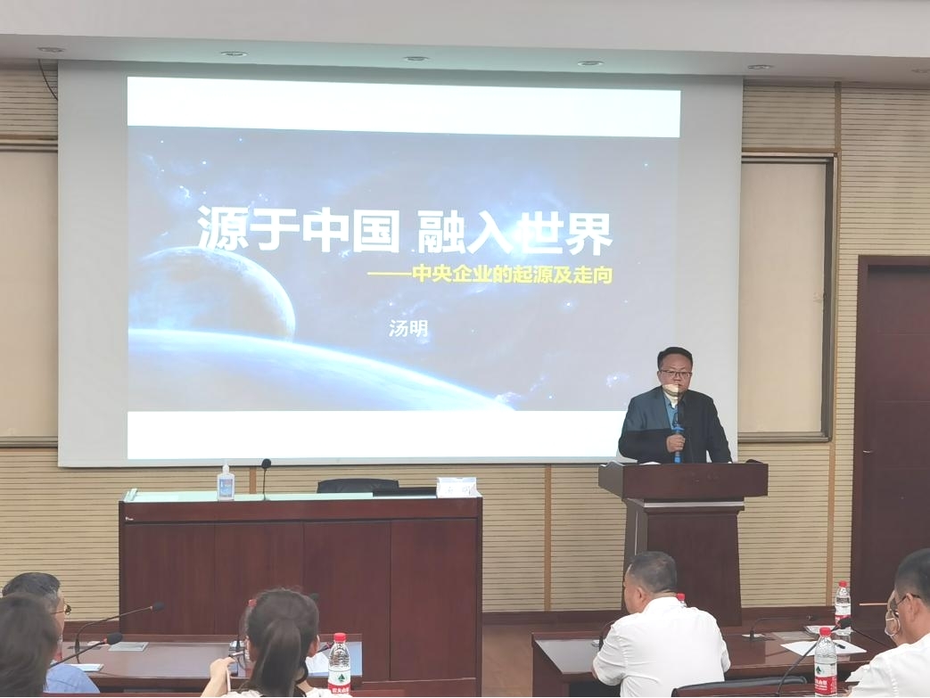 5月24日下午3:00,中国电力建设股份有限公司副总经济师汤明应邀以“源于中国 融入世界——中央企业的起源及走向”为题为冰球官网师生带来了一场精彩的学术报告。报告会由学院执行院长郭强主持,党委书记王斌、副院长李良以及学院60余名师生参加了活动。