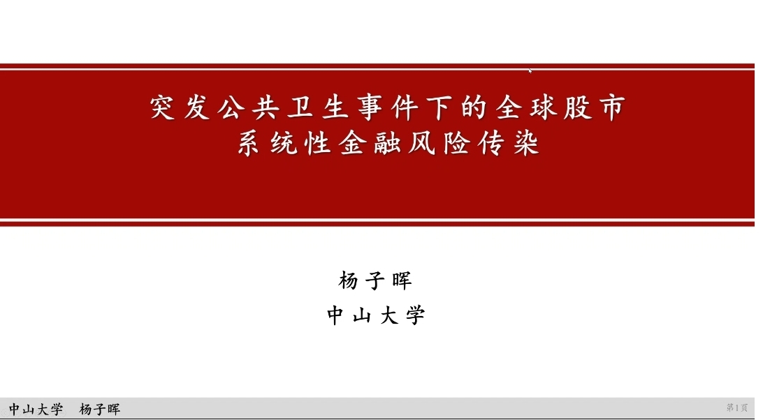 2021年10月19日下午15时,中山大学岭南学院杨子晖教授在线上开展了题为“突发公共卫生事件下的全球股市系统性金融风险传染”的学术报告,冰球突破豪华版官方网站金融与财务学系马锋副教授主持了此次讲座。