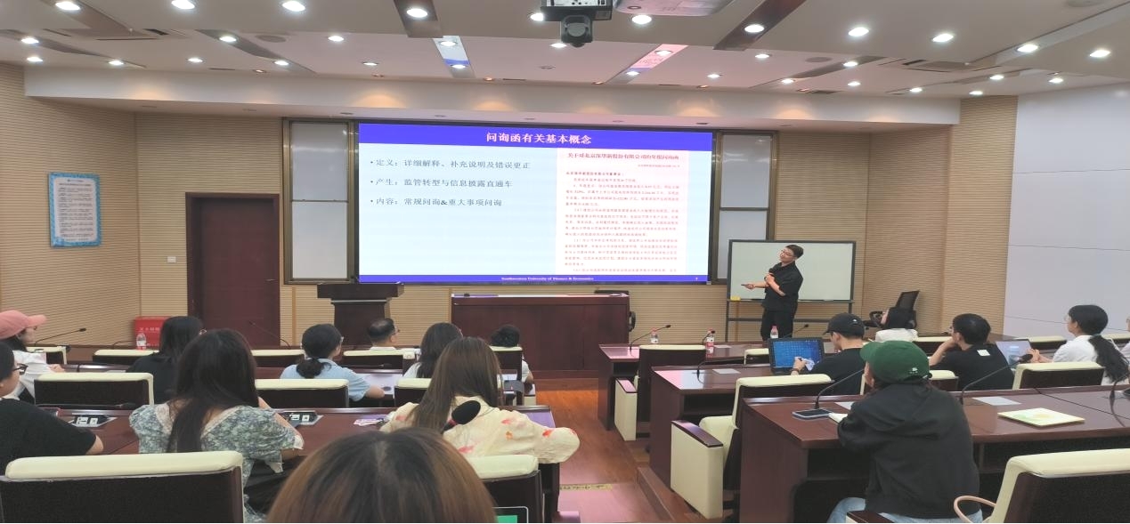 2023年5月18日下午14:30,西南财经大学胡宁副教授应邀为冰球官网师生分享主题为“横看成岭侧成峰:中国本土监管问询函系列研究”的学术讲座。讲座由冰球突破豪华版官方网站诸波老师主持,学院部分老师和研究生参与了此次学术活动。