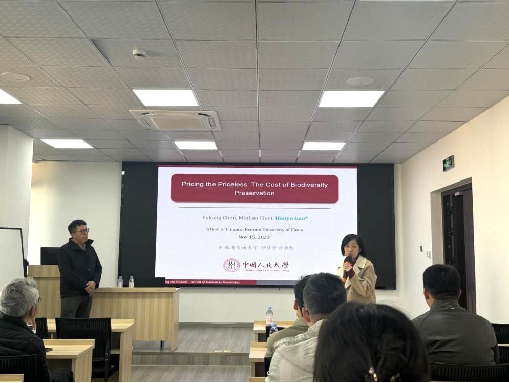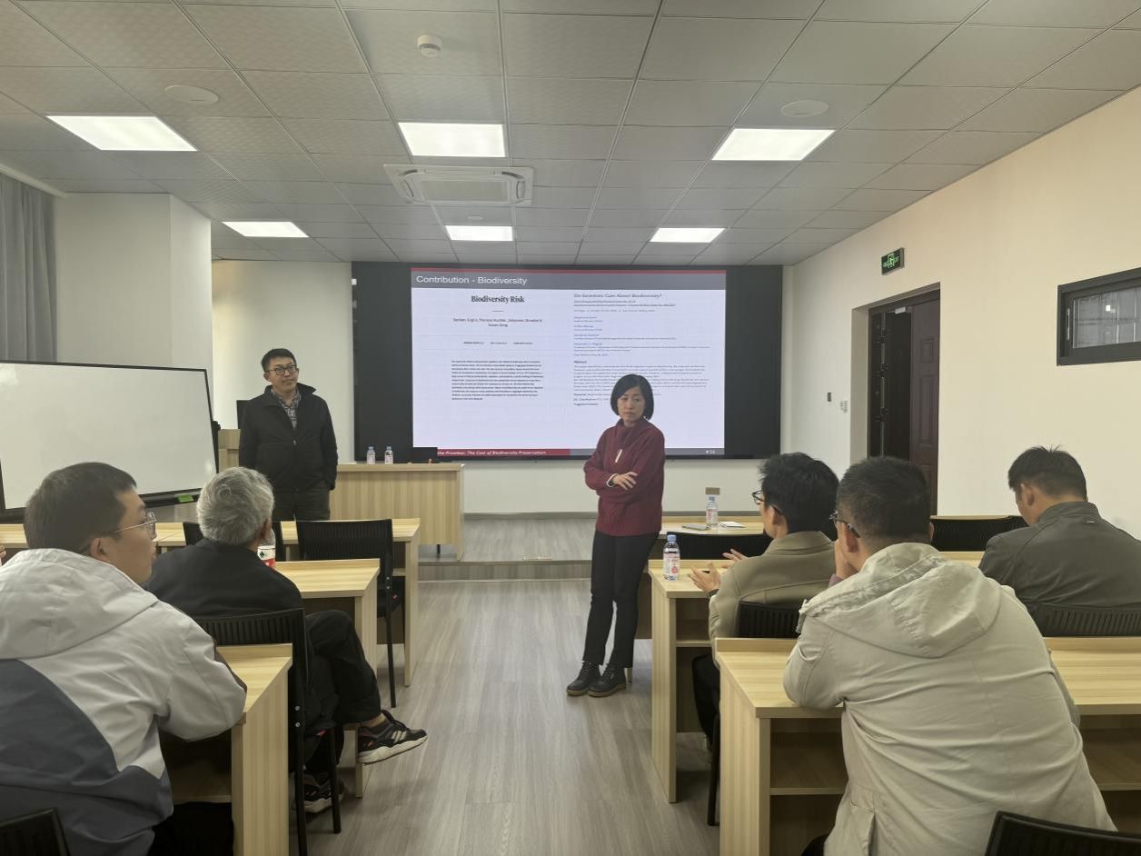 2023年11月15日下午14:00,中国人民大学财政金融学院高昊宇教授应邀在九里校区零号楼0819室为冰球官网师生作题为“Pricing the Priceless: The Cost of Biodiversity Preservation”的学术讲座。此次讲座由学院副院长周嘉南教授主持,学院部分教师及研究生参加此次活动,周嘉南教授首先对高昊宇教授的学术成果进行了介绍,同时对高昊宇教授的到来表示热烈的欢迎与感谢。