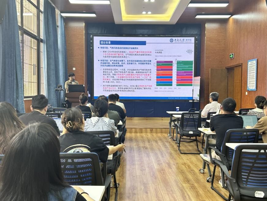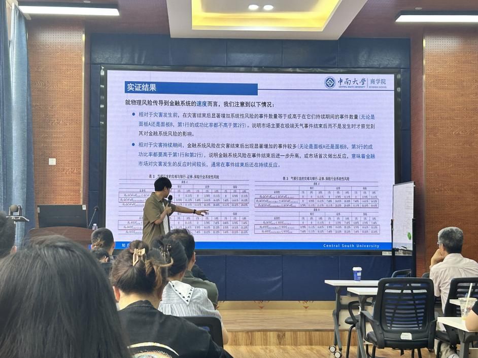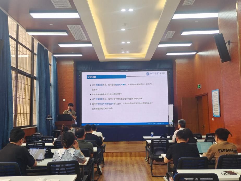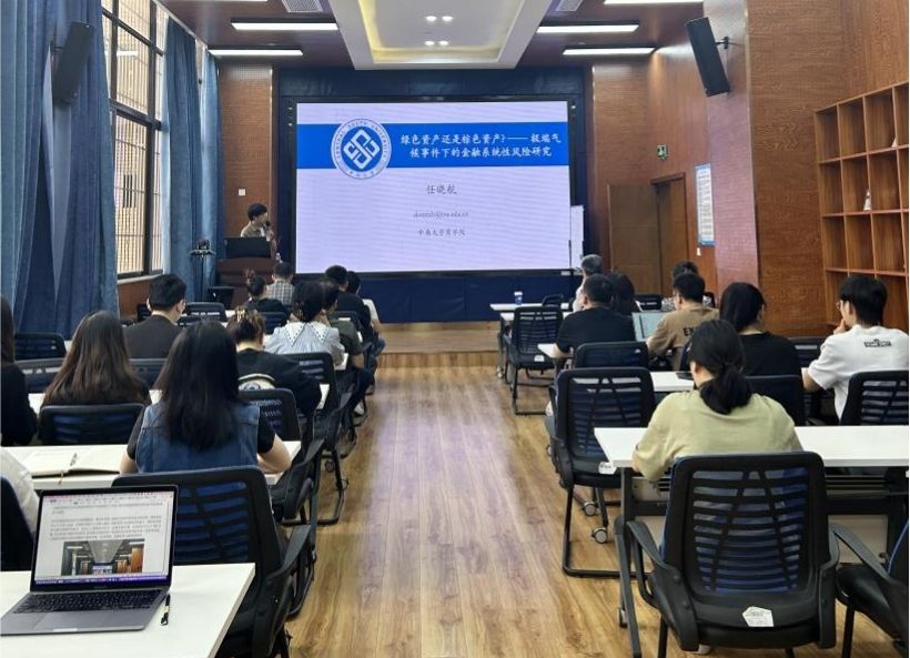 2024年5月14日,中南大学商学院任晓航副教授应邀在学院为冰球官网师生作题为“绿色资产还是棕色资产?——极端气候事件下的金融系统性风险研究”的学术讲座。此次学术活动由学院马锋副教授主持,学院部分教师及研究生参加此次讲座。马锋副教授对任晓航副教授的学术成果进行了介绍,并对他的到来表示热烈的欢迎与感谢。