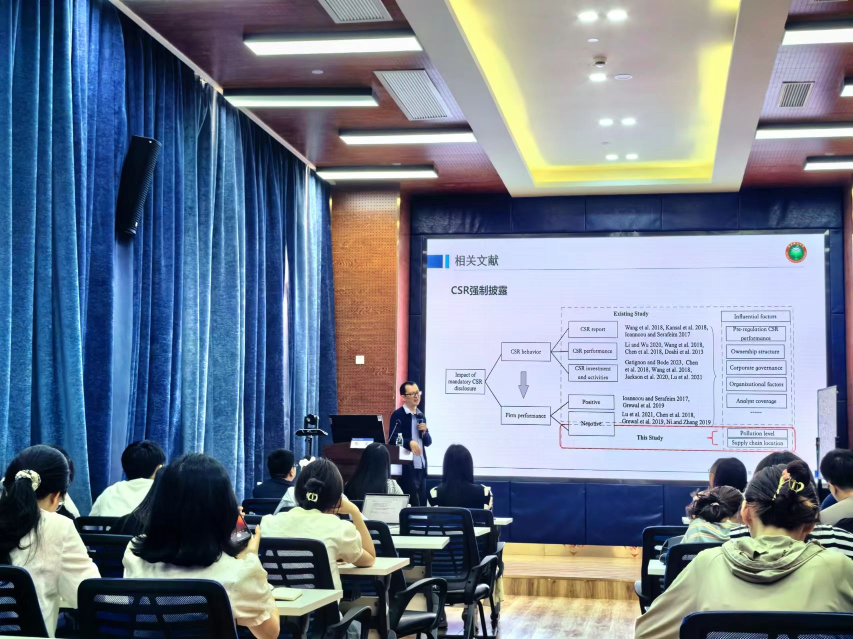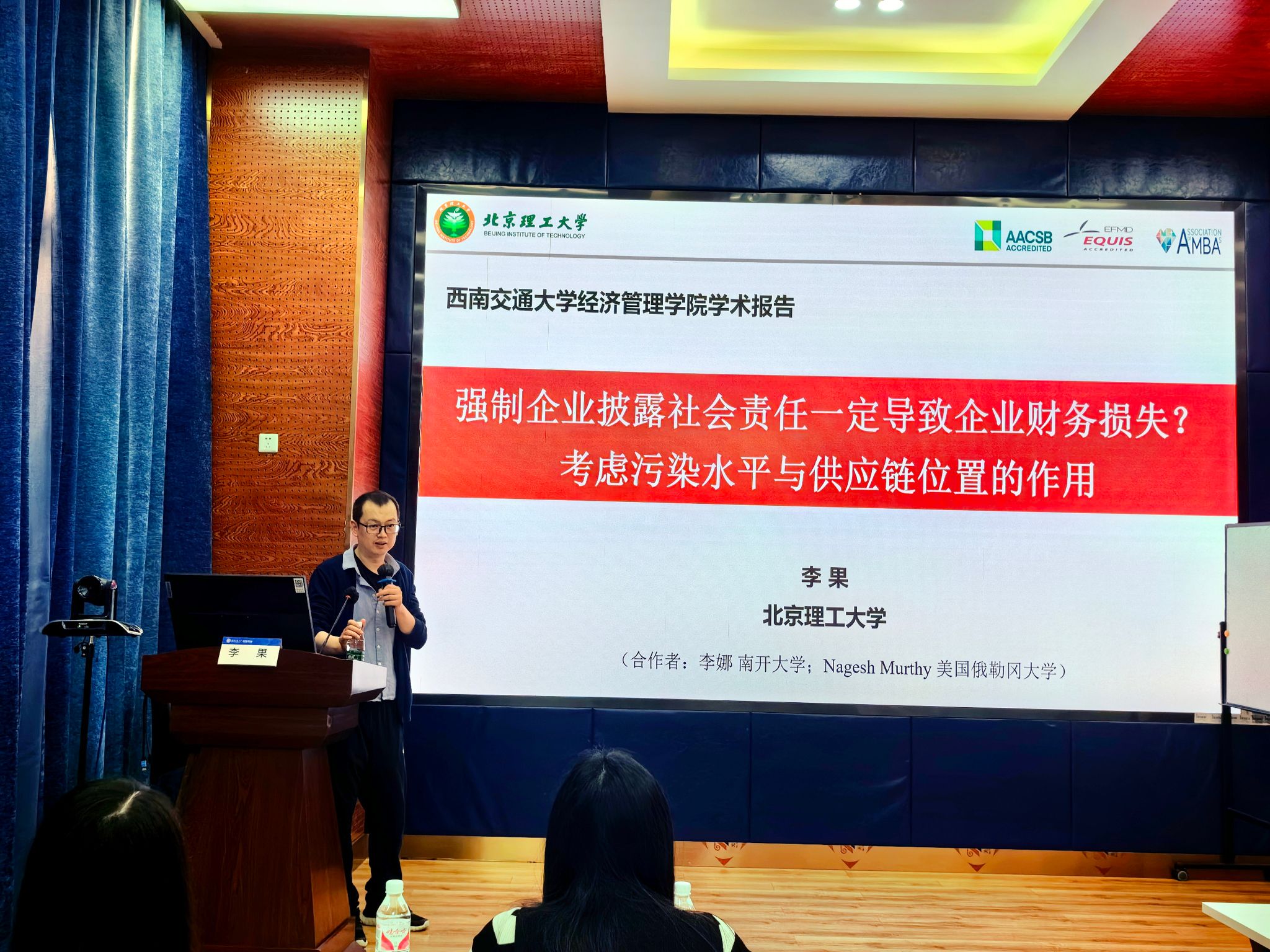 2024年5月24日,北京理工大学管理与经济学院管理科学与物流系主任,国家高层次人才计划入选者李果教授应学院邀请,来冰球官网展开学术交流活动,交流主题为“强制企业披露社会责任一定导致企业财务损失?考虑污染水平与供应链位置的作用”。本次学术活动由学院副院长聂佳佳教授主持,学院部分教师、博士生和硕士生等50多人参加了此次学术活动。聂佳佳教授首先对李果教授的学术成果进行了介绍,同时对李果教授的来访表示热烈的欢迎!