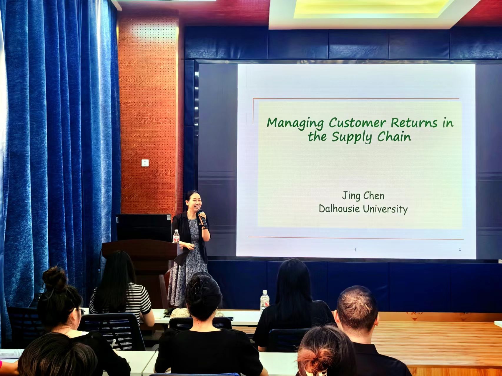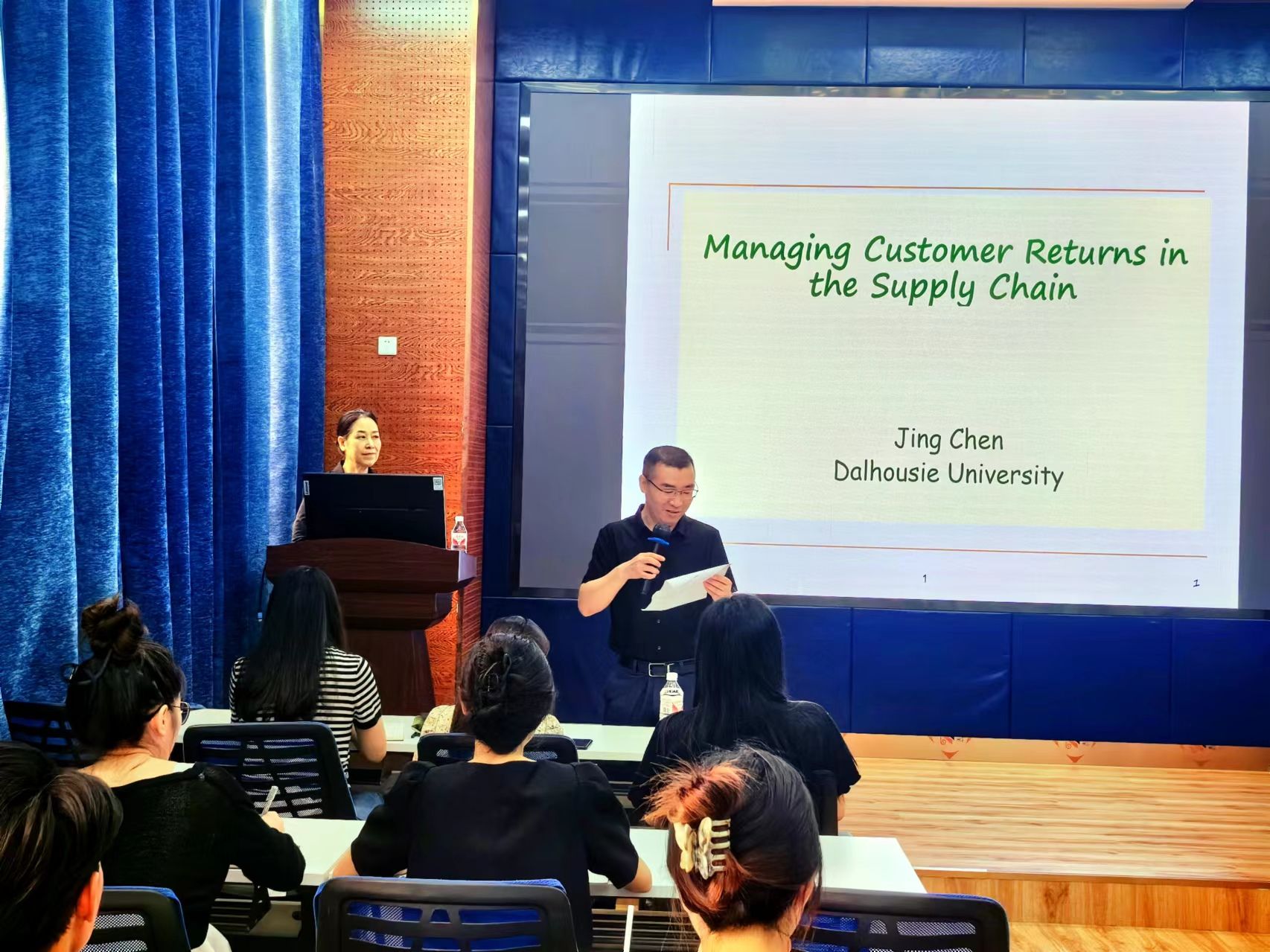 6月19日上午,加拿大达尔豪斯大学的陈静教授应邀为学院师生作题为“Managing Customer Returns in the Supply Chain”的学术分享。此次学术讲座由学院副院长聂佳佳教授主持,学院部分教师及研究生参加了此次学术交流活动。聂佳佳对陈静教授的学术成果进行了介绍,并对陈静教授的来访表示热烈的欢迎与感谢!