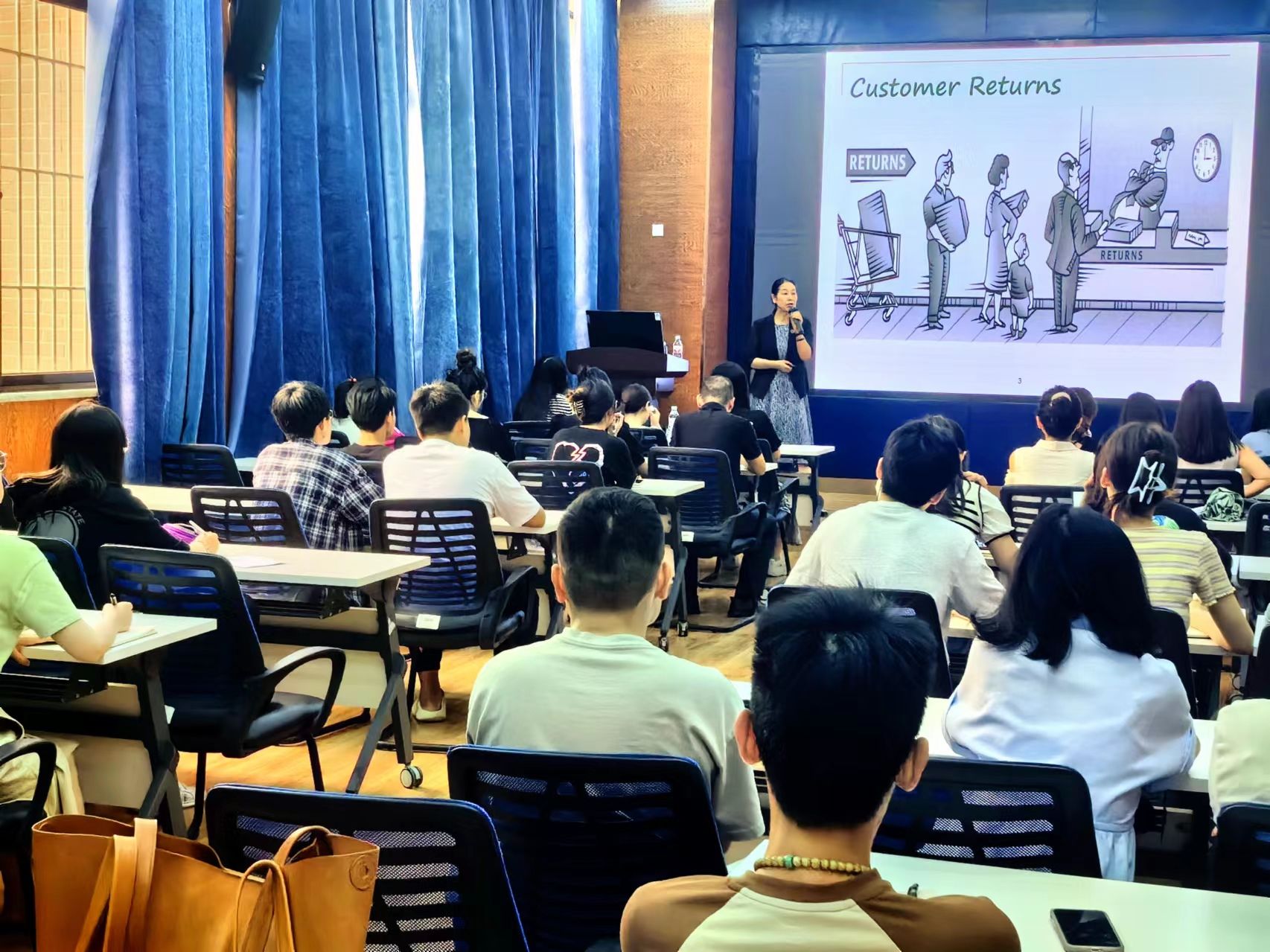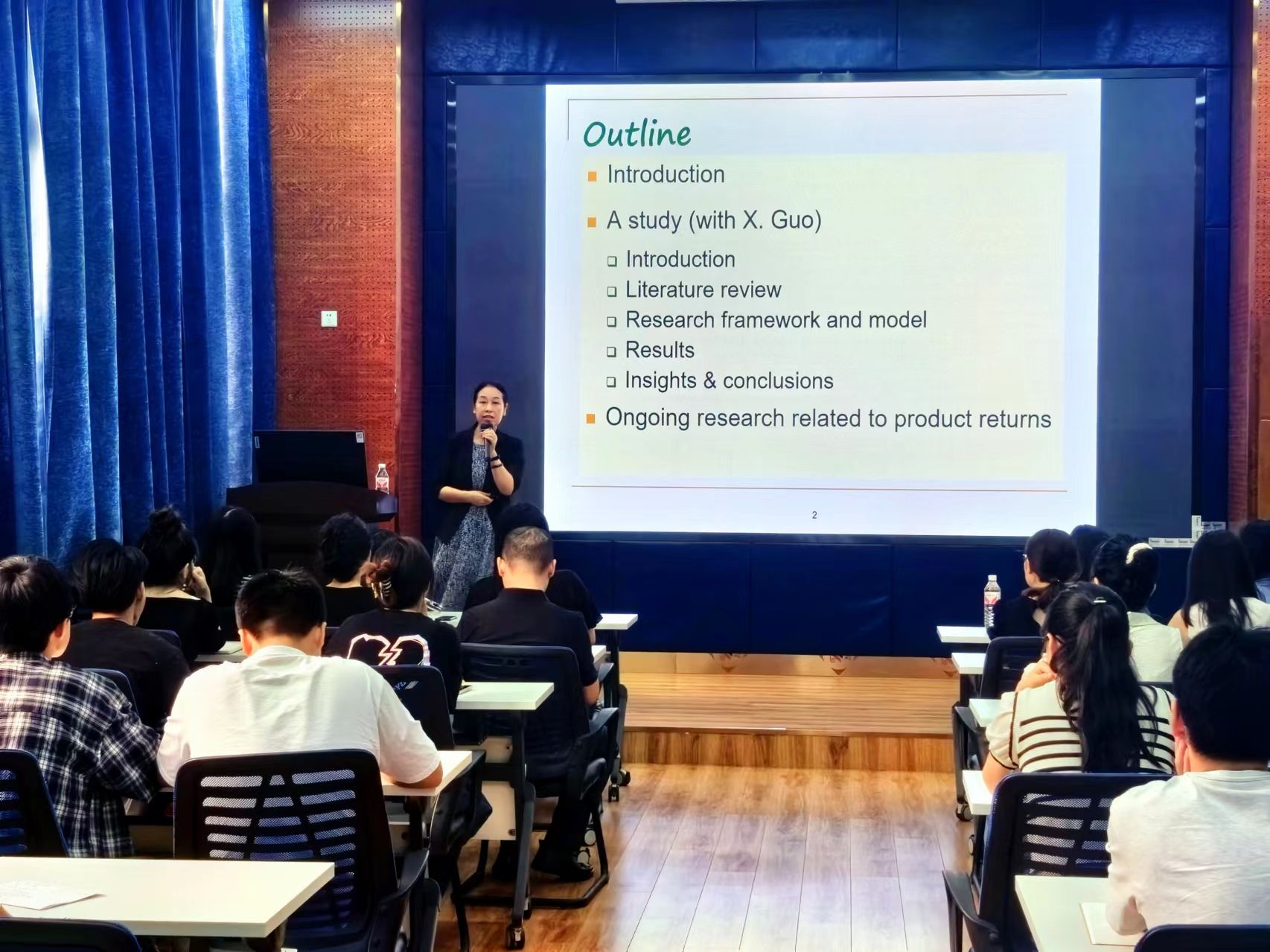 陈教授首先结合大量的实际案例和统计数据对退货政策在实践中的应用进行讲述,指出提供退货渠道对制造商建立与消费的直接联系有积极作用,因此有效的退货政策对于提高顾客满意度和供应链效率至关重要。陈教授提出为降低顾客退货率,供应链上游的制造企业可以提高产品质量,下游的零售企业可以提高售前服务水平。