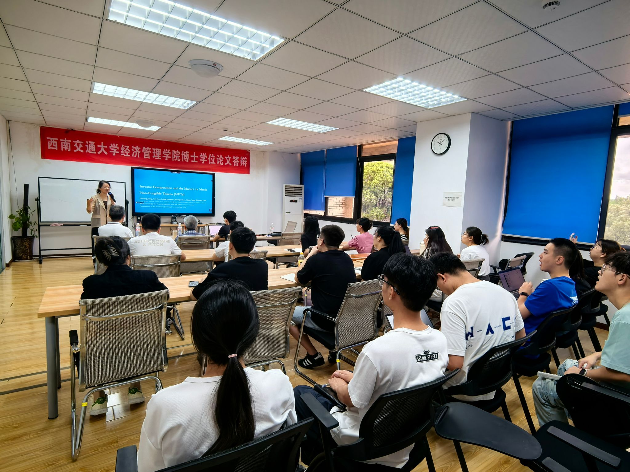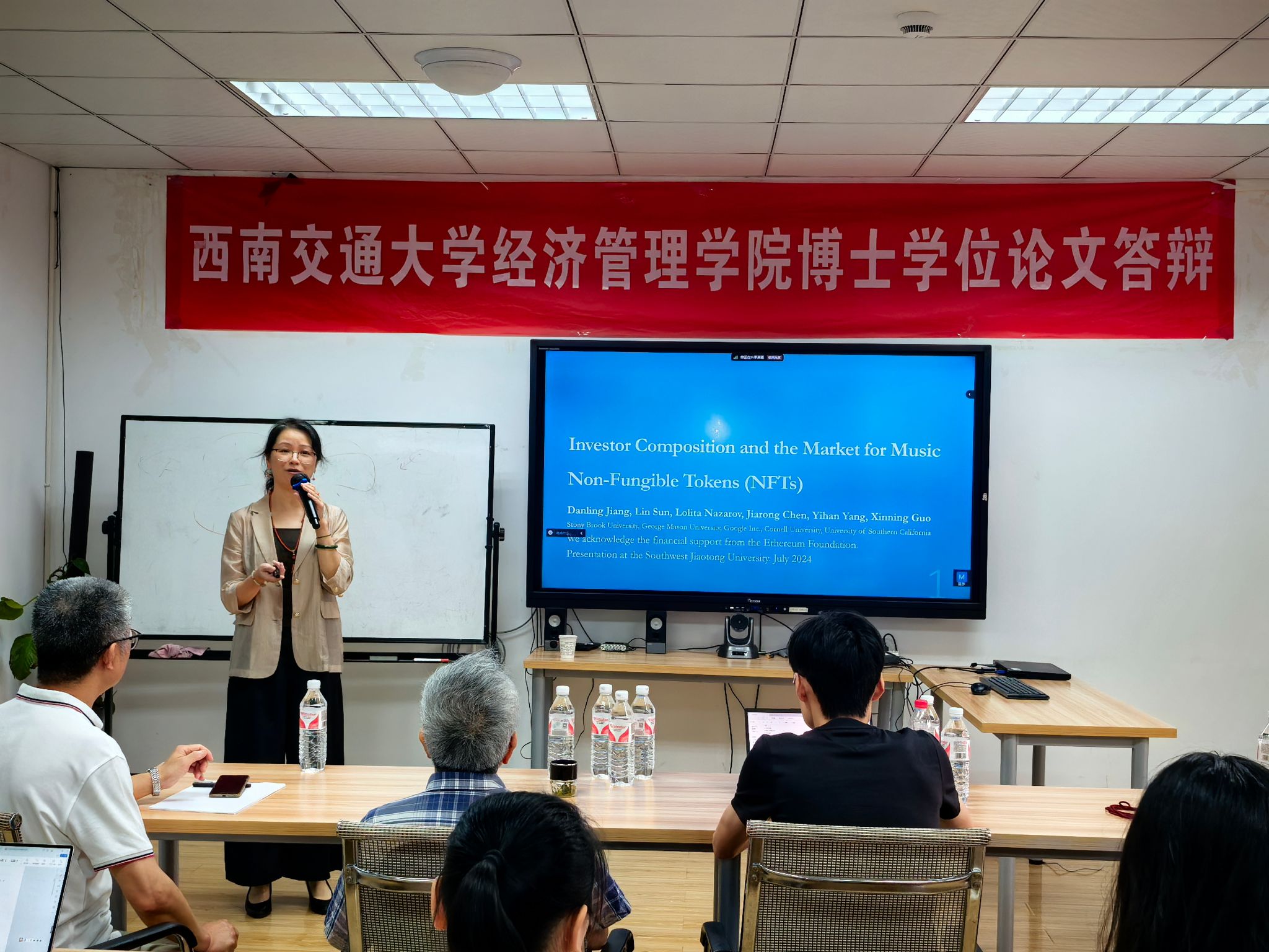 2024年7月8日上午,美国纽约州立大学石溪分校教授、冰球突破豪华版官方网站兼职教授蒋丹凌教授应邀在冰球突破豪华版官方网站开展题为“Investor Composition and the Market for Music Non-Fungible Tokens (NFTS)”的学术报告,马锋副院长主持了此次学术活动,学院金融与财务学系黄登仕教授、朱宏泉教授等教师及研究生参加了此次活动,马锋副院长介绍了蒋丹凌教授的学术背景及研究成果,并对蒋丹凌教授回校表示热烈的欢迎。
