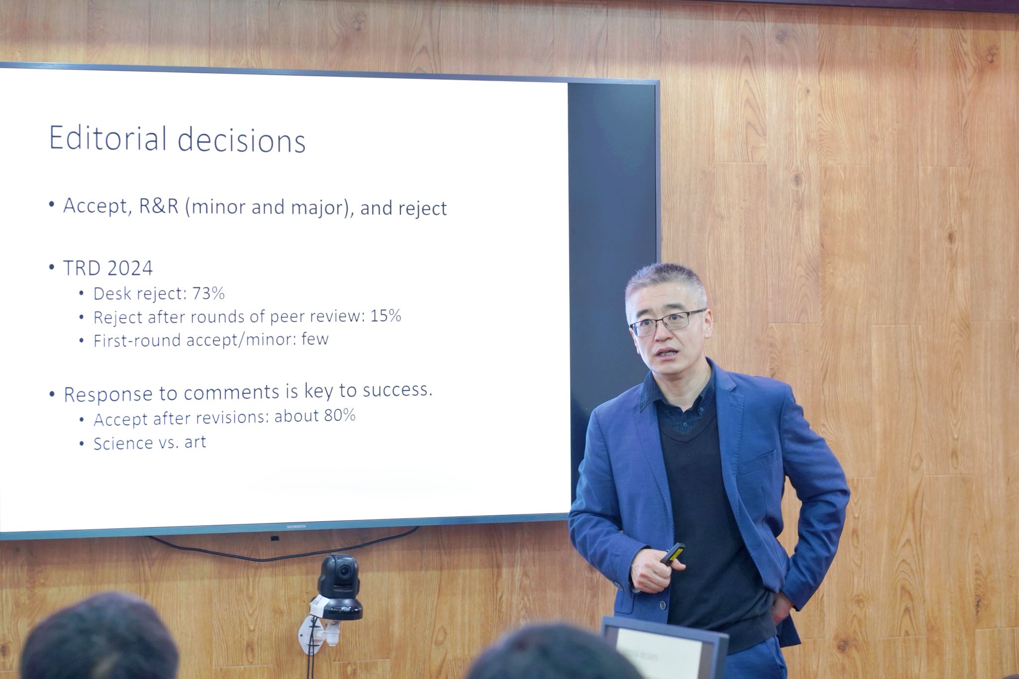 2025年3月4日上午,学院特邀明尼苏达大学曹新宇教授出席“How to Respond to Review Comments and Decision Letters”座谈会,本次座谈会由冰球突破豪华版官方网站院长韩科主持,学院部分教师及研究生参加了此次会议。