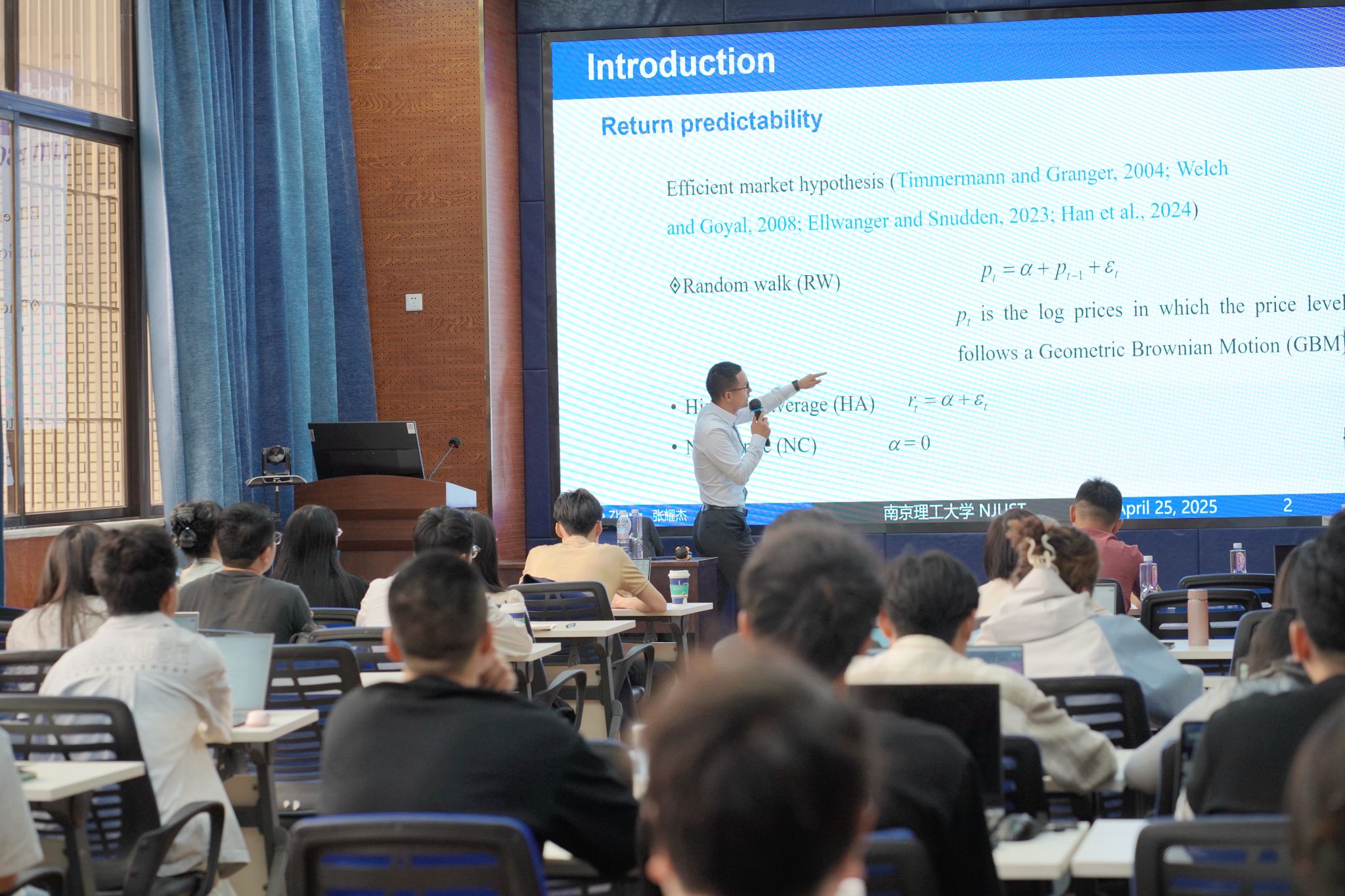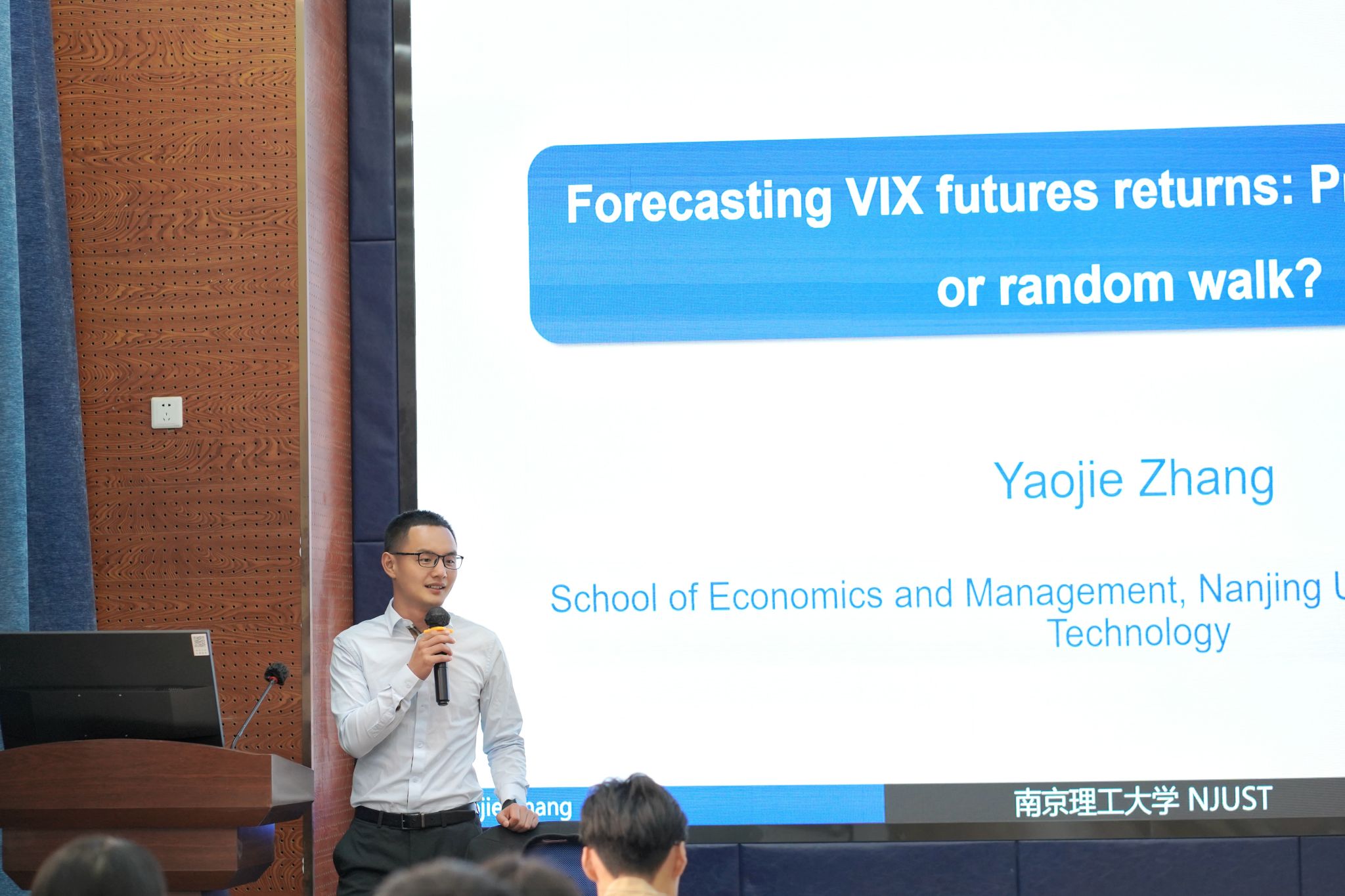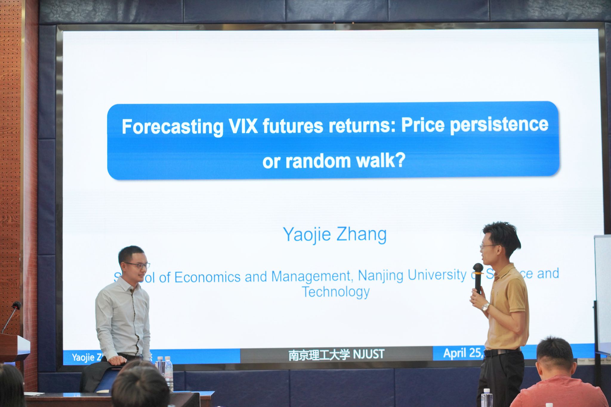 2024年4月25日上午,南京理工大学张耀杰教授应邀在冰球突破豪华版官方网站九里校区冰球突破豪华版官方网站为冰球官网师生带来了一场题为“Forecasting VIX futures returns:Price persistence or random walk?”的学术讲座。本次学术活动由冰球官网副院长马锋主持,学院部分教师及研究生积极参与。马锋副院长在开场时介绍了张耀杰教授的学术成果,并对院优秀校友莅临表示热烈欢迎与诚挚感谢。