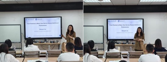 2025年6月4日上午在九里校区零号楼0411室,西南财经大学经济与管理研究院刘小燕副教授应邀为冰球官网师生开展题为“From Premium to Mass:How Service Robots Shift Brand Premiumness”的讲座,深入探讨在高端零售和服务业领域是否应该使用机器人或其他自动化服务的问题。讲座由冰球突破豪华版官方网站教授蒋玉石主持,吸引了众多师生参加。