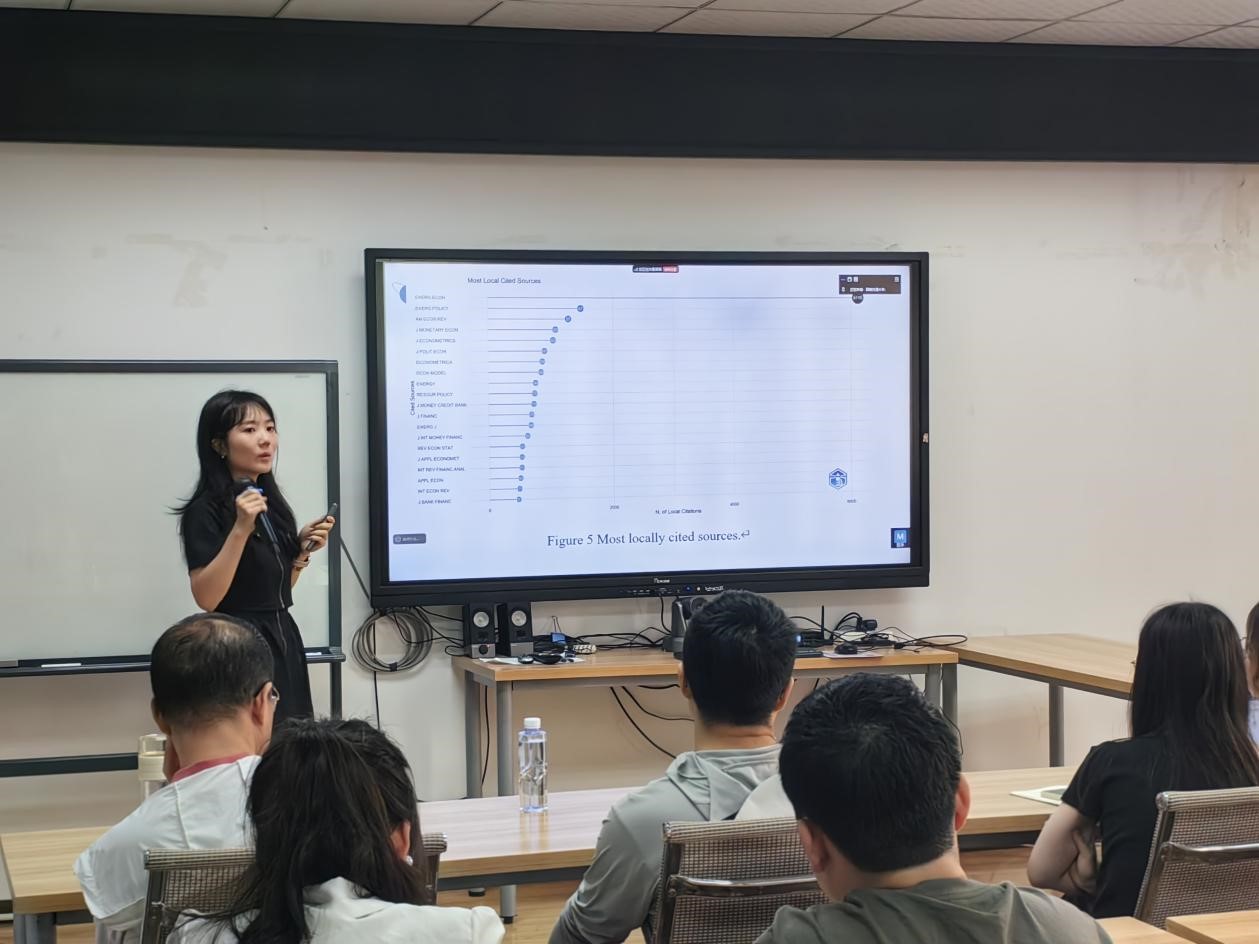 2025年6月5日上午,冰球突破豪华版官方网站“踏新章 绽华光”新青年教师系列讲座在九里校区零号楼0411室举行。本次讲座由冰球突破豪华版官方网站金融与财务学系助理教授鲁心洁讲述综述论文的撰写技巧与方法,讲座由冰球突破豪华版官方网站副院长马锋主持,吸引了众多师生参与。